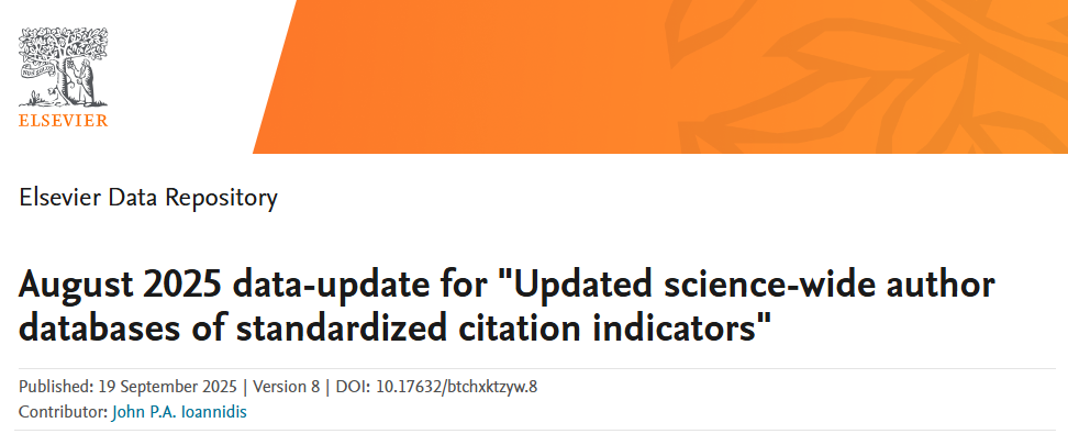 公司多位教授同时入选2025年全球前2%顶尖科学家终身影响力和年度影响力双榜单