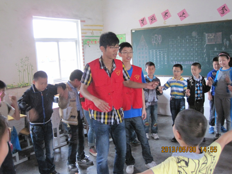 老师同学们对志愿者们的到来感到无比的开心与新奇。在简单的互动之后,志愿者们带领小朋友进入了智力游戏的天地。在亚青会的即将到来之际,为了提早培养小朋友的体育精神,志愿者们精心设计了一个“我做你猜”的体育小游戏,志愿者们表演一个个体育比赛项目以及与运动有关且能体现团结的重要性的游戏,增长了小朋友的体育精神和团结合作的能力。面对着孩子们灿烂的笑颜,辛苦了一下午的志愿者们心中仍感到无比温暖。老师们也表示希望志愿者多多组织此类活动,对青年志愿者表示感谢。最后活动在昏黄的余晖中温馨地结束了。