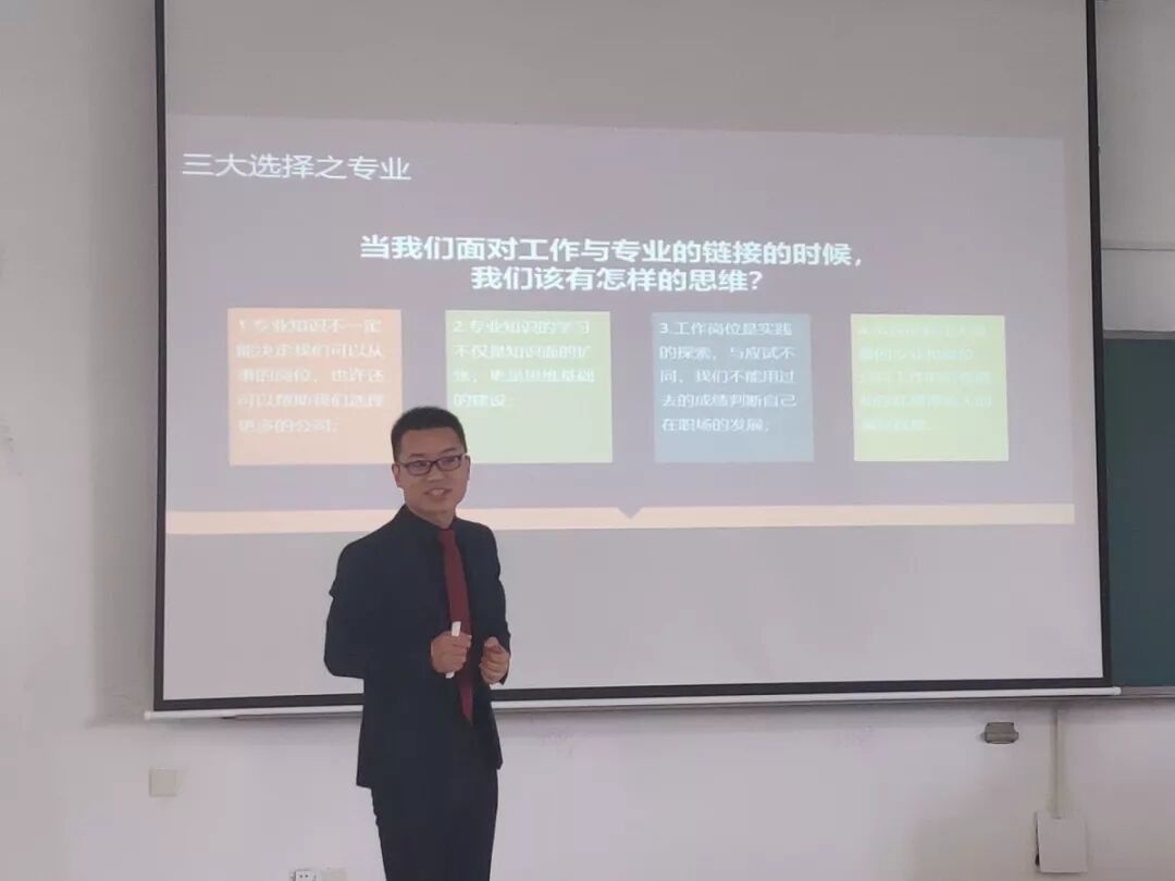第二次活动在4月27日于厚学401举办,建华建材集团的户国梁老师与同学们探讨了“找什么样的工作”、“去什么样的公司”等就业根本问题,并提出了自己独特的见解:“跟企业恋爱,跟事业结婚,但要在恋爱中找到适合你的婚姻。”