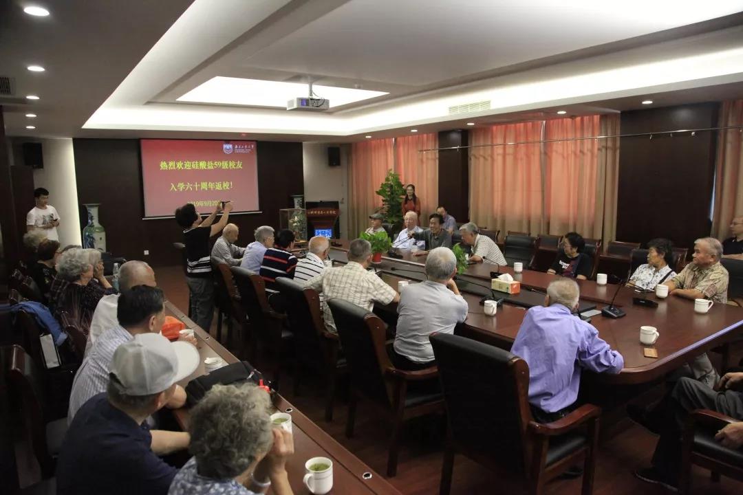 9月19日上午best365足球官网(原南京化工公司)硅酸盐专业59级员工欢聚一堂在创新楼C501举办了师生座谈会。参加会议的有20多位来自天南地北的耄耋老员工,以及best365足球官网员工总会副会长、秘书长高明教授,老教师代表谢玉声教授、杨南如教授、何旭初教授、洪履祥教授、陆佩文教授、钟白茜教授,员工事务处处长万永敏、公司党委副书记考宏涛等。