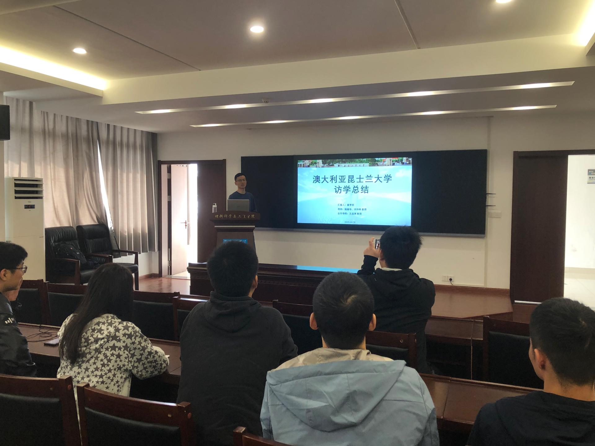 10月28日上午,公司研究生国际交流分享报告会在材料学科楼会议室B511举行。刚刚完成在澳大利亚昆士兰大学访学的博士研究生黄亨明担任此次讲座的主讲人,best365足球官网硕/博士研究生代表参加了报告会。