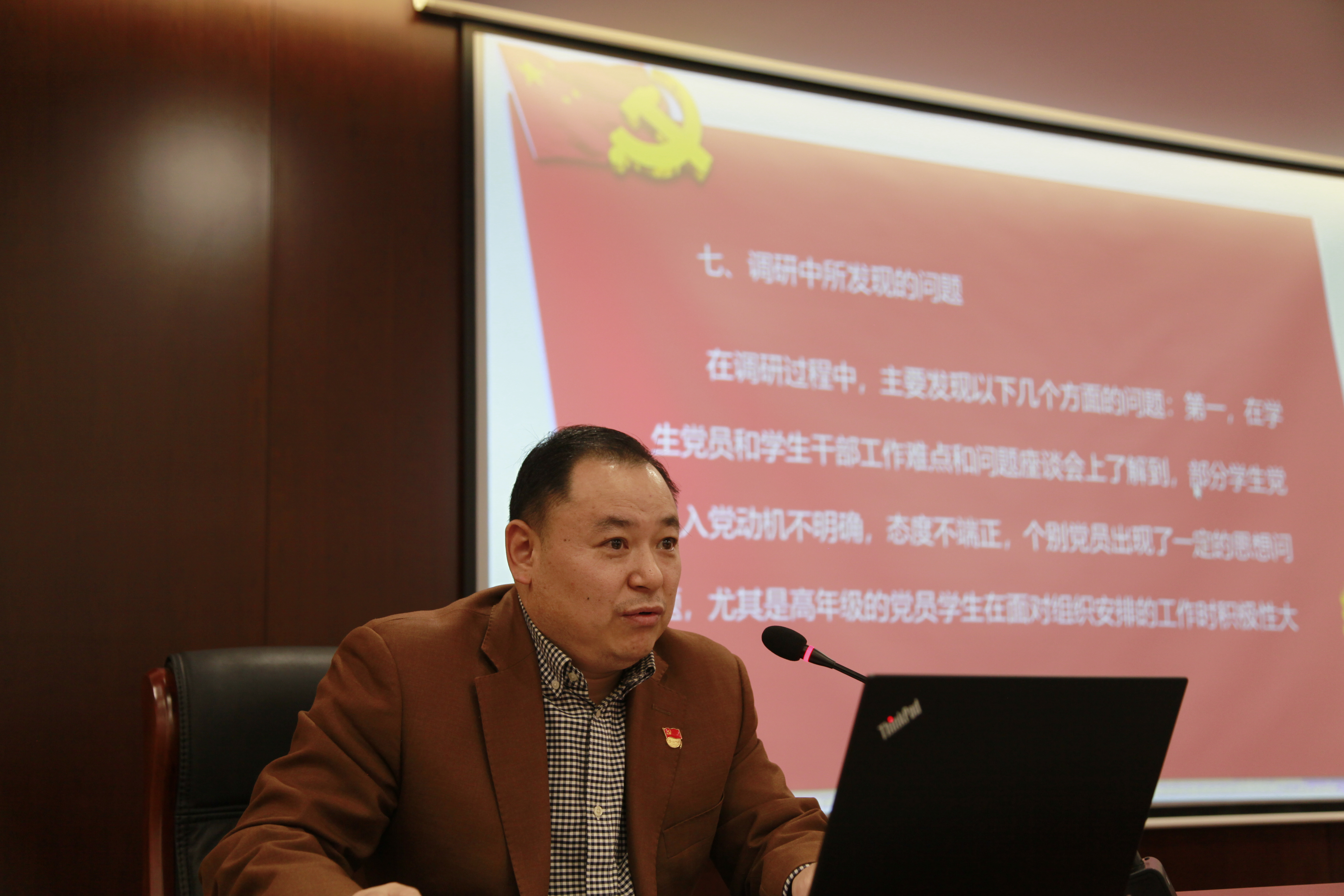 随后,吕忆农就公司领导班子开展的主题教育调研情况进行总结,强调公司党政领导班子要继续围绕“守初心、担使命、找差距、抓落实”的总体要求,认真检视调研工作中发现的根本性问题,加强顶层设计,破解体制机制难题,调整系、中心领导班子,进一步完善公司的奖惩机制,激发全院师生干事创业的积极性,引领和带动全院广大师生在完善公司全员全过程全方位育人的体制机制、加强思想政治工作和思政课建设、推动国内一流国际知名创业型大学建设等方面实现高质量发展。