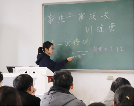 培训开始,新媒体部部长侯天琦同学详细介绍了微信公众号推文的写法和注意事项,帮助干事们了解活动宣传方面的知识。接着,新闻宣传部副部长蔡韵玲同学开展了新闻稿写作培训,她通过范文分析,讲解了一篇合格的新闻稿应该如何书写。最后,视觉传媒部部长黄秋霖同学为干事们介绍了PR软件的操作方法,传授干事们视频制作的基础技能。
