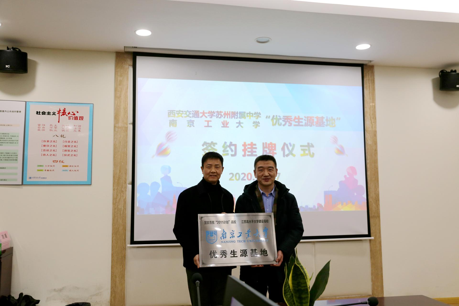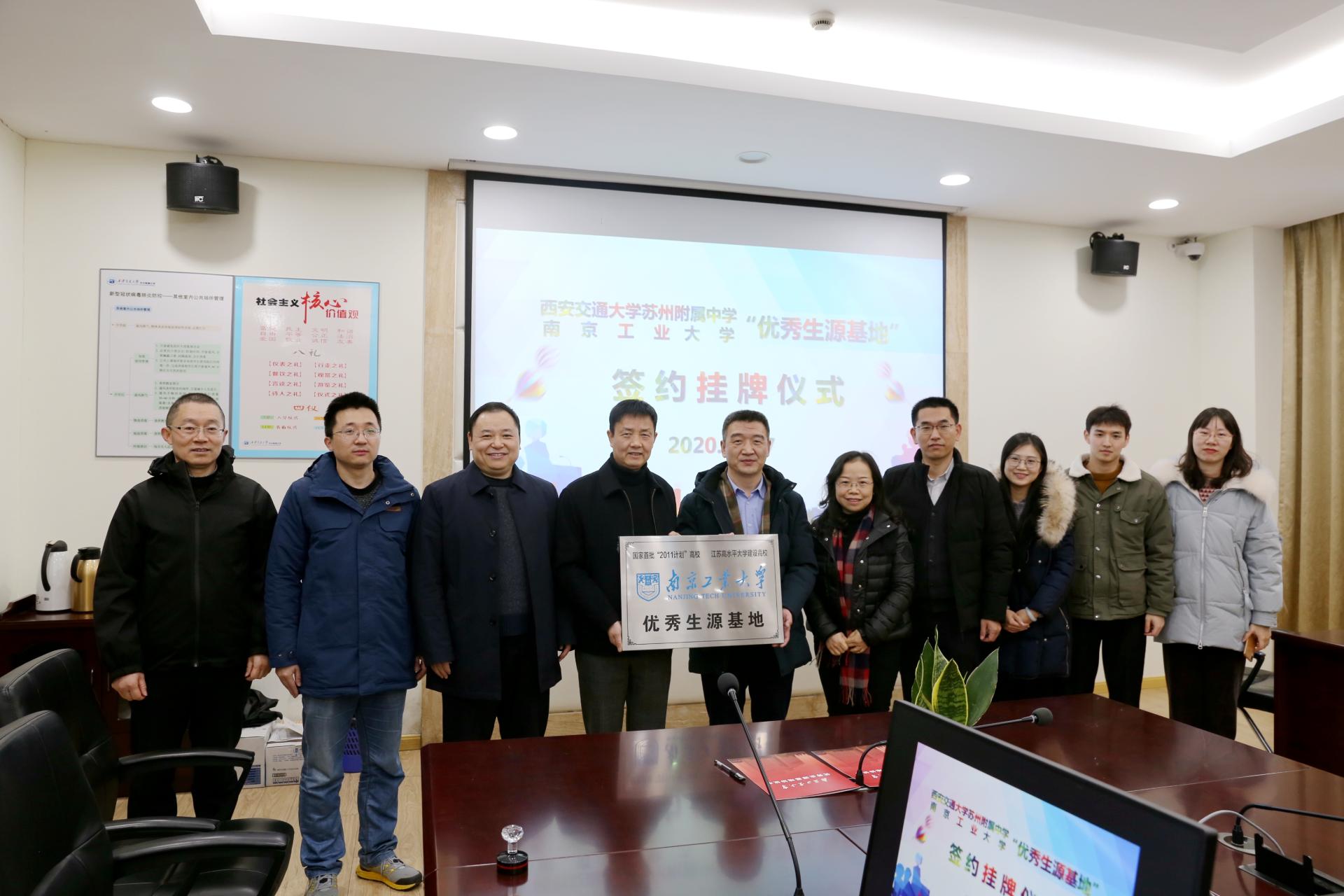 12月17日,公司赴西安交通大学苏州附属中学、吴县中学教育集团“优秀生源基地”签约授牌仪式。材料科学与工程公司党委书记高树军、党委副书记考宏涛、校招生办公室副主任季青春以及best365足球官网团委书记戴惠、辅导员李诚参加授牌仪式。