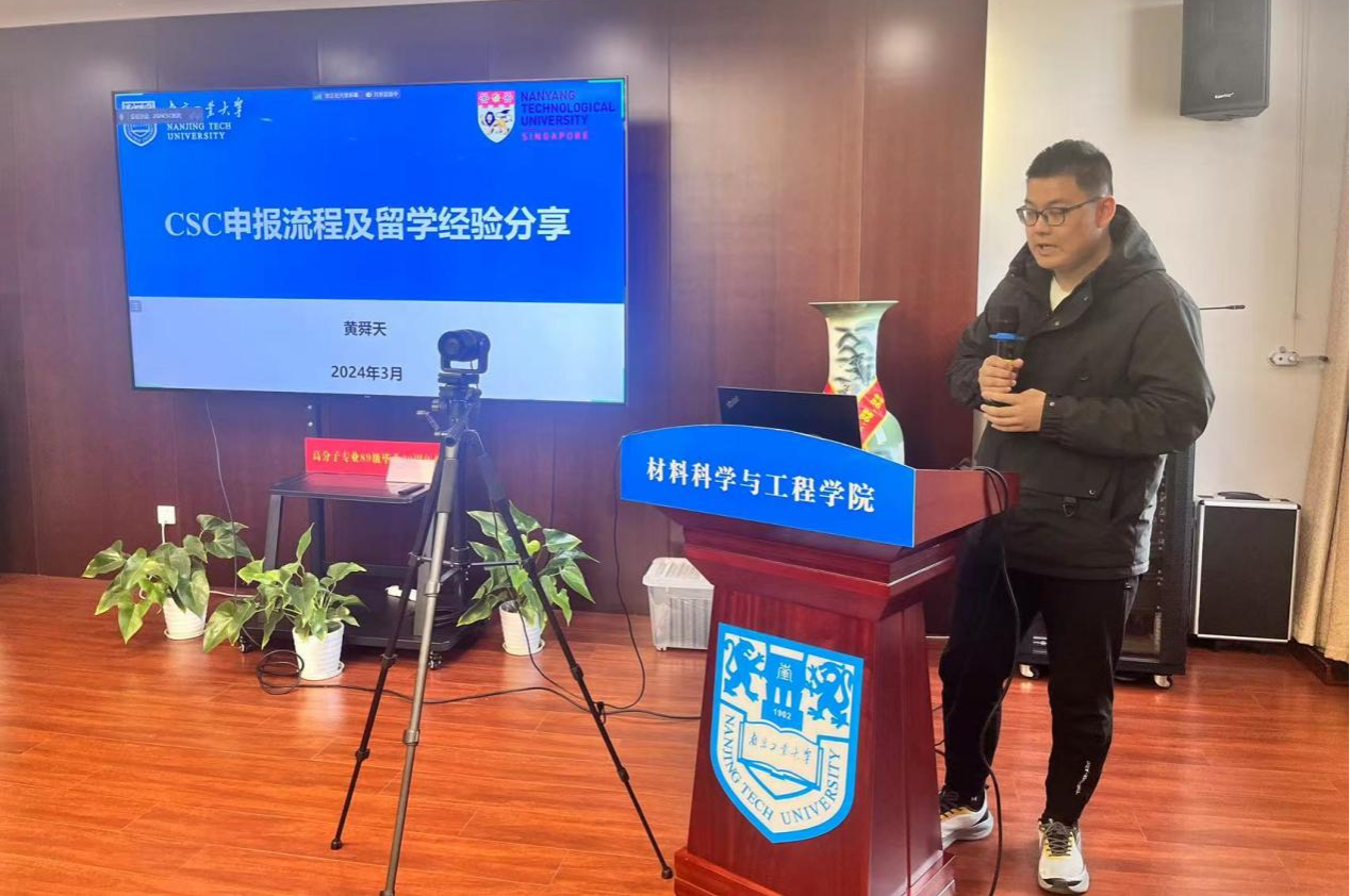 随后,黄舜天博士分享了他在新加坡南洋理工大学的访学经历。他详细介绍了南洋理工大学的学术氛围、科研资源和职工活,并结合自己的研究经历,分享了在海外进行科研工作的心得体会。他强调了语言能力、科研素养和跨文化交流能力在公派留学中的重要性,为同学们提供了很好的建议。