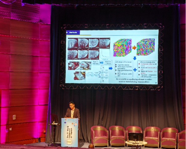本次钛会上公司常辉教授代表团组共投稿会议论文6篇,特邀大会报告1篇,口头报告2篇,墙报3篇。其中,公司常辉教授作为世界钛会国际组委会中国委员应邀作题为“The Research Progress and Industry Developments of Titanium in China”的大会报告,从提取及回收技术、增材制造技术、成分-微观结构-性能关系和低成本钛合金研究等方面向全球介绍中国近四年钛领域发展现状和技术成果,得到了国际同行的广泛认可。