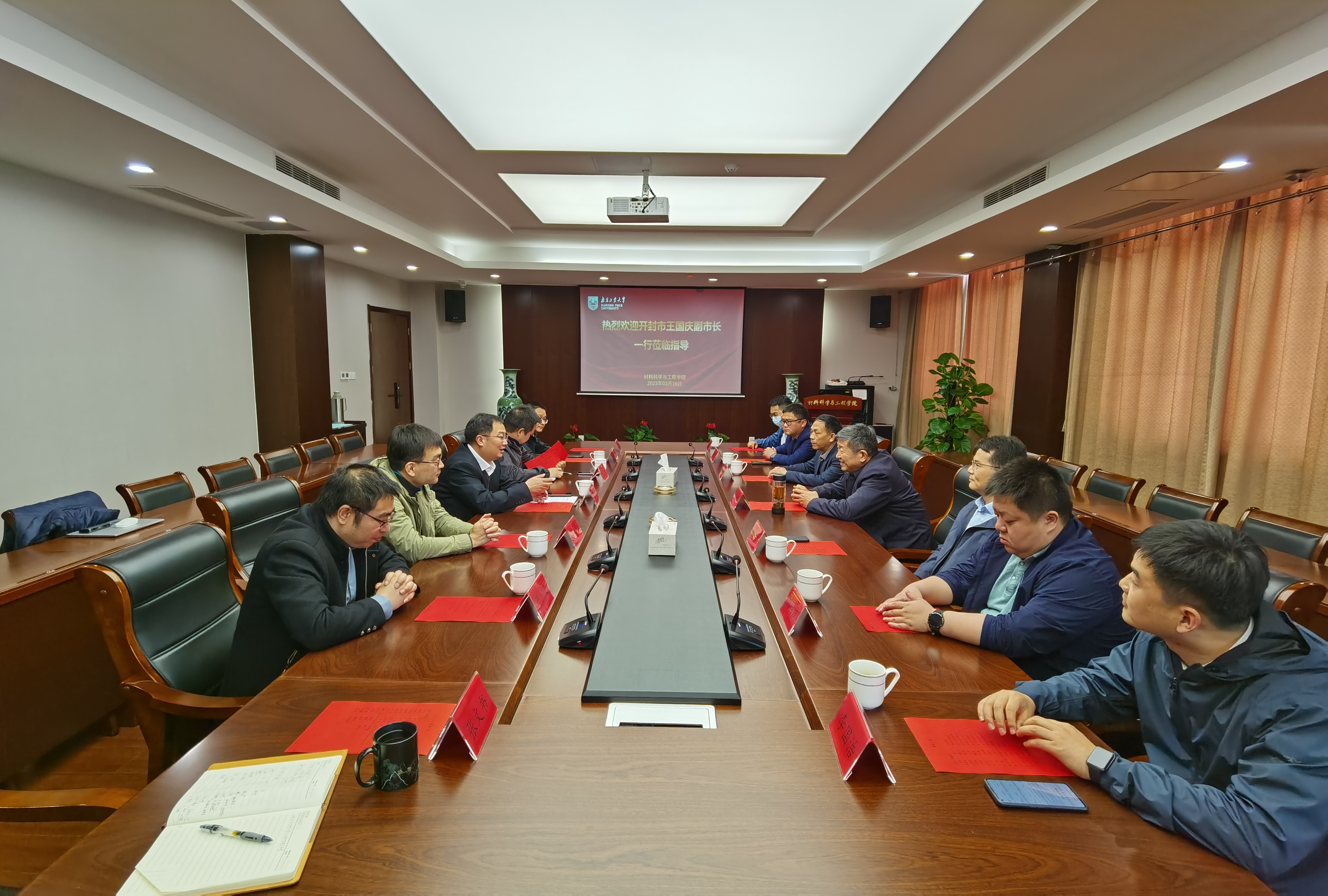 3月16日上午,开封市政府副市长王国庆率队禹王台区副区长谢昌旭、开封清研新材料研究院有限公司总经理赵斌一行9人到公司进行调研及交流。公司经理崔升、杨晖教授等出席了交流会议,副经理沈岳松主持会议。