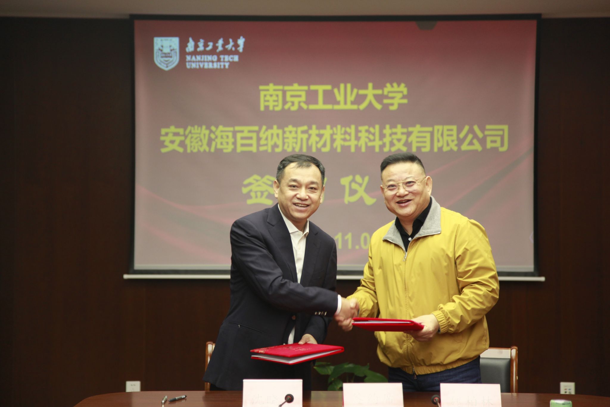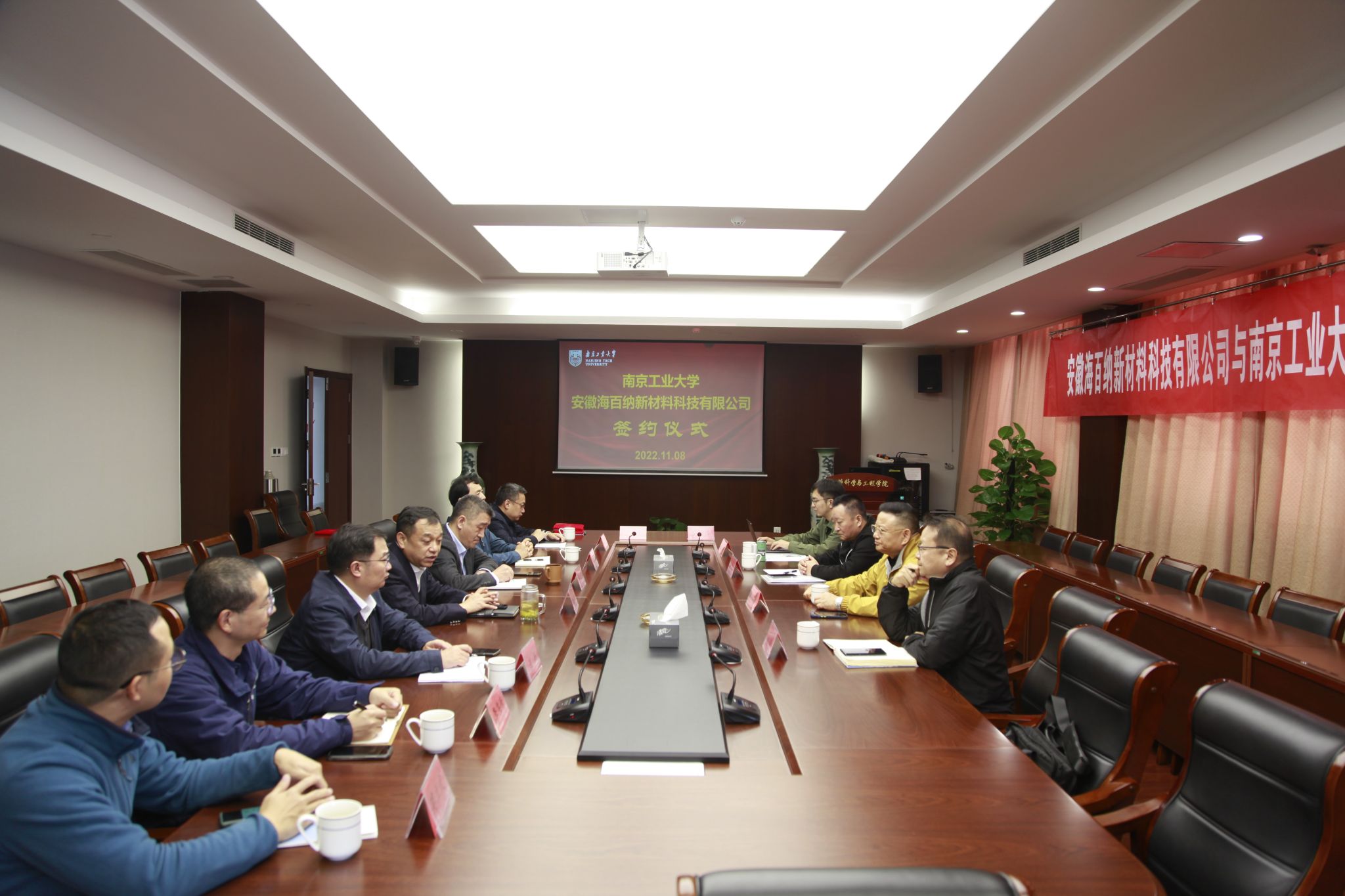 11月8日上午,安徽海百纳新材料科技有限公司董事长魏柏林等一行4人来公司访问交流,并举行合作签约仪式。公司党委书记高树军、项目负责人沈晓冬教授等公司领导和老师参加会议。