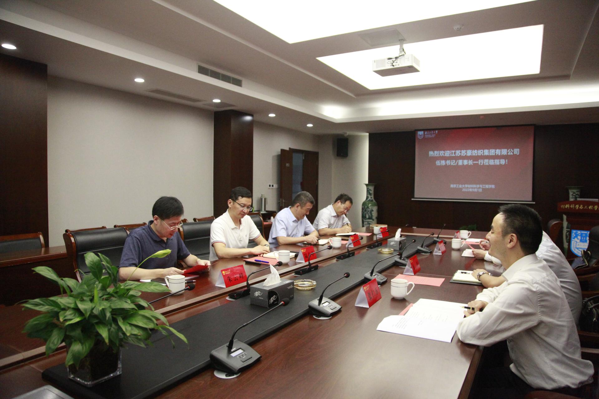 9月1日下午,江苏苏豪纺织集团党委书记、董事长伍栋,党委委员、常务副总经理孙吉东,党办人力资源部总经理张仁乐、副总经理黄荟一行来公司考察交流。