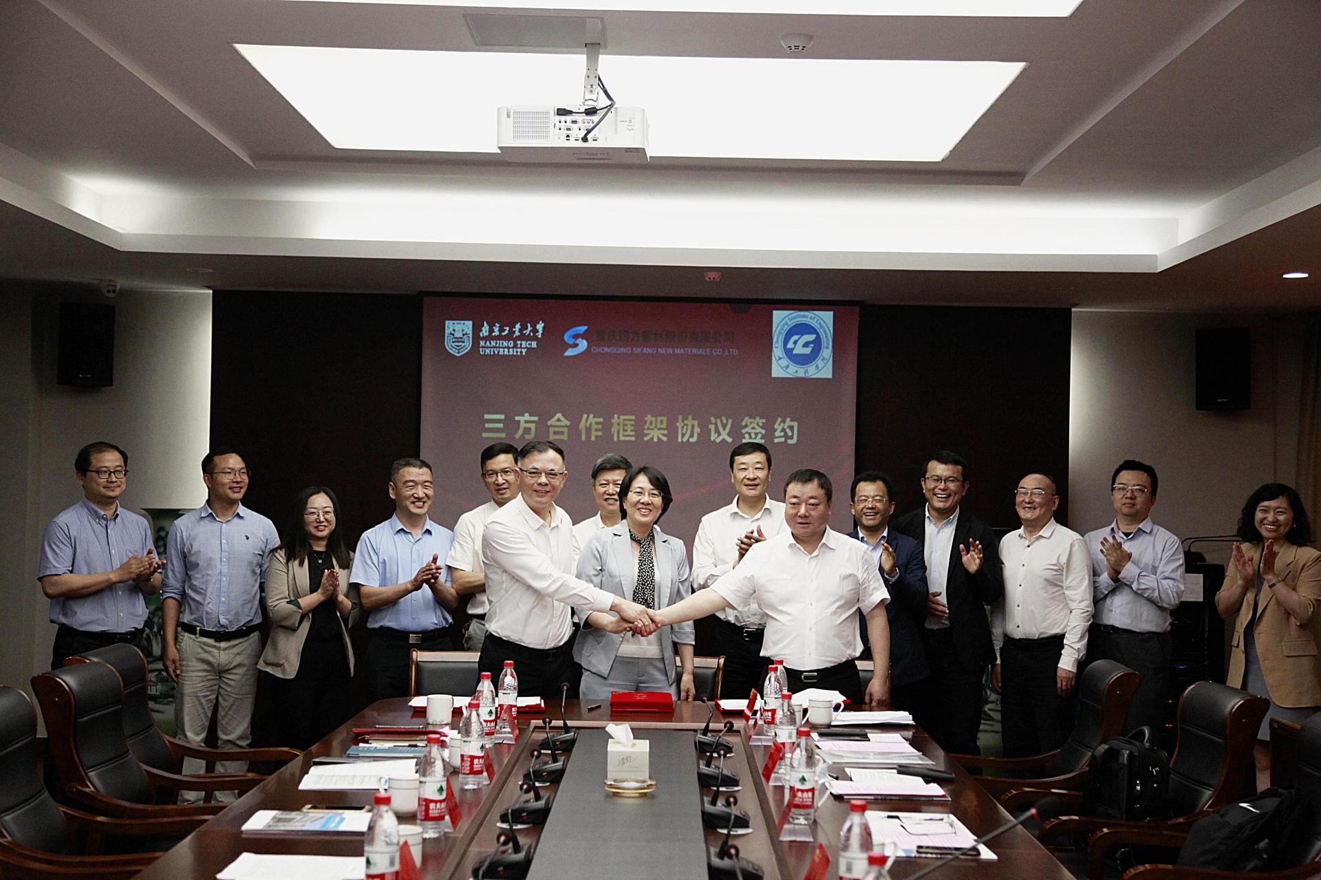 会上,三方签署了合作框架协议,各方结成全面战略合作伙伴关系,立足建筑建材领域科技创新,推动科技成果转化,提升建筑建材行业研发创新能力,依托重庆四方新材有限公司产业平台,在科研开发、成果转化、人才培养、教育实践、学科共建等领域展开全方位的合作,研究筹建研究院、院士工作站、博士后流动站等,促进公司与企业、公司与公司深度联合,为推动四方新材继续保持行业技术引领地位及best365足球官网和重庆工程公司建设发展提供有力支撑。