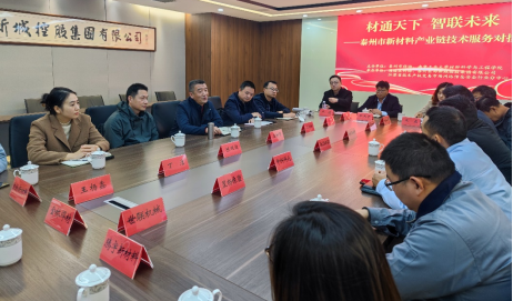 为深入挖掘新材料企业发展技术需求,深化校地企合作,推进科技成果“落地生根”,11月21日下午,公司党委书记高树军、副经理沈岳松率公司青年创新团队成员陈双俊、沈育才、王杨鑫、邱守添、丁洁等走进泰州海陵区开展“砼创行”产学研交流活动。泰州市科协学术部部长林来宏、泰州东部新城控股集团东城信息科技有限公司总经理尤捷、泰州市海陵区科协主席王磊、地方企业代表参加交流会,王磊主持交流会。