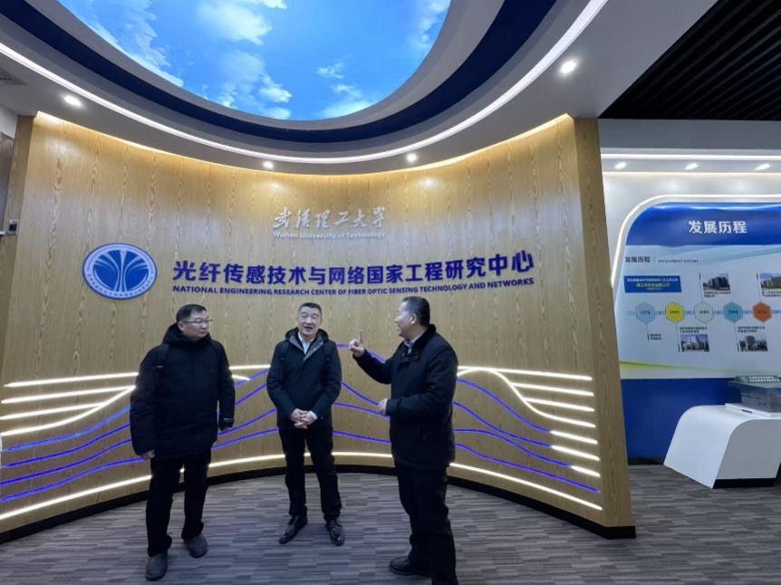 交流会后,公司一行参观了武汉理工大学光纤传感技术与网络国家工程研究中心,中心李明忠书记详细讲解了光纤中心的发展历程与卓越成就。