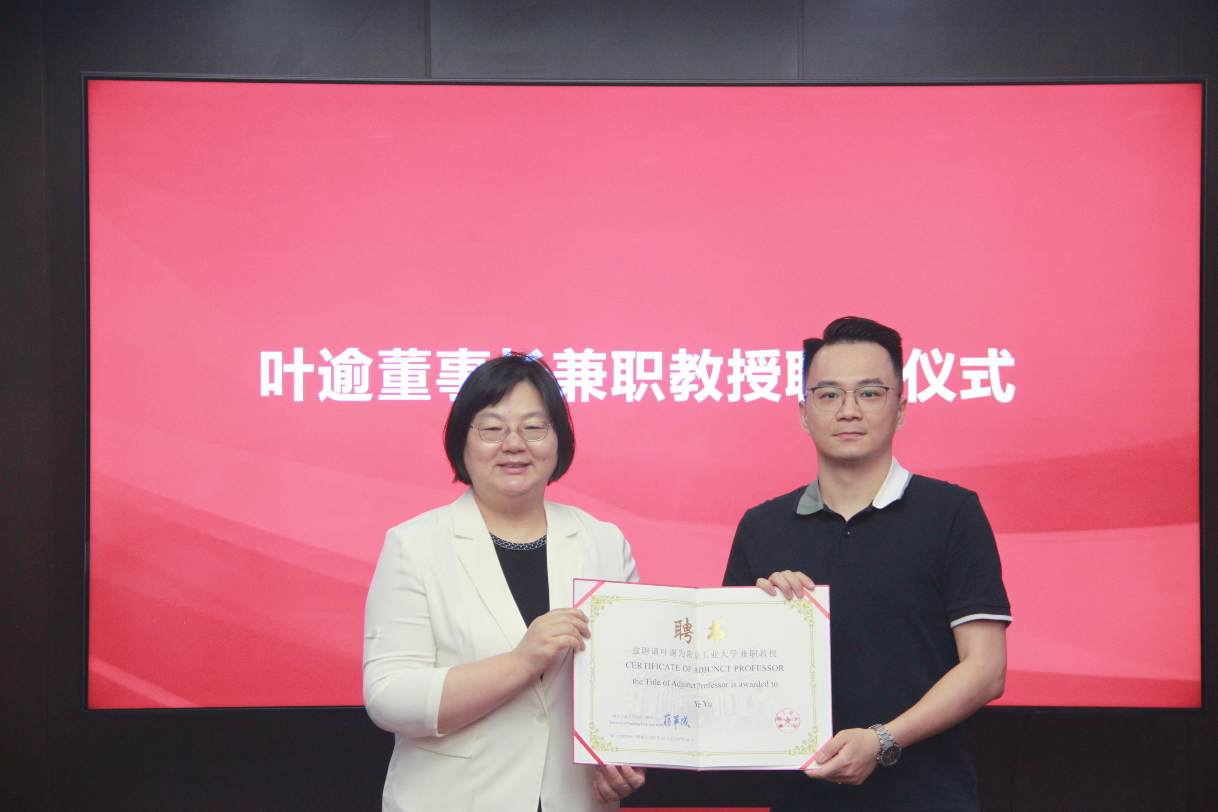 随后举行了叶逾兼职教授聘任仪式,人事处处长王曙光介绍了叶逾的成长经历和卓越成绩。夏侃代表公司为叶逾颁发兼职教授聘书。叶逾在发言中表示将发挥产业优势,支持公司人才培养工作。