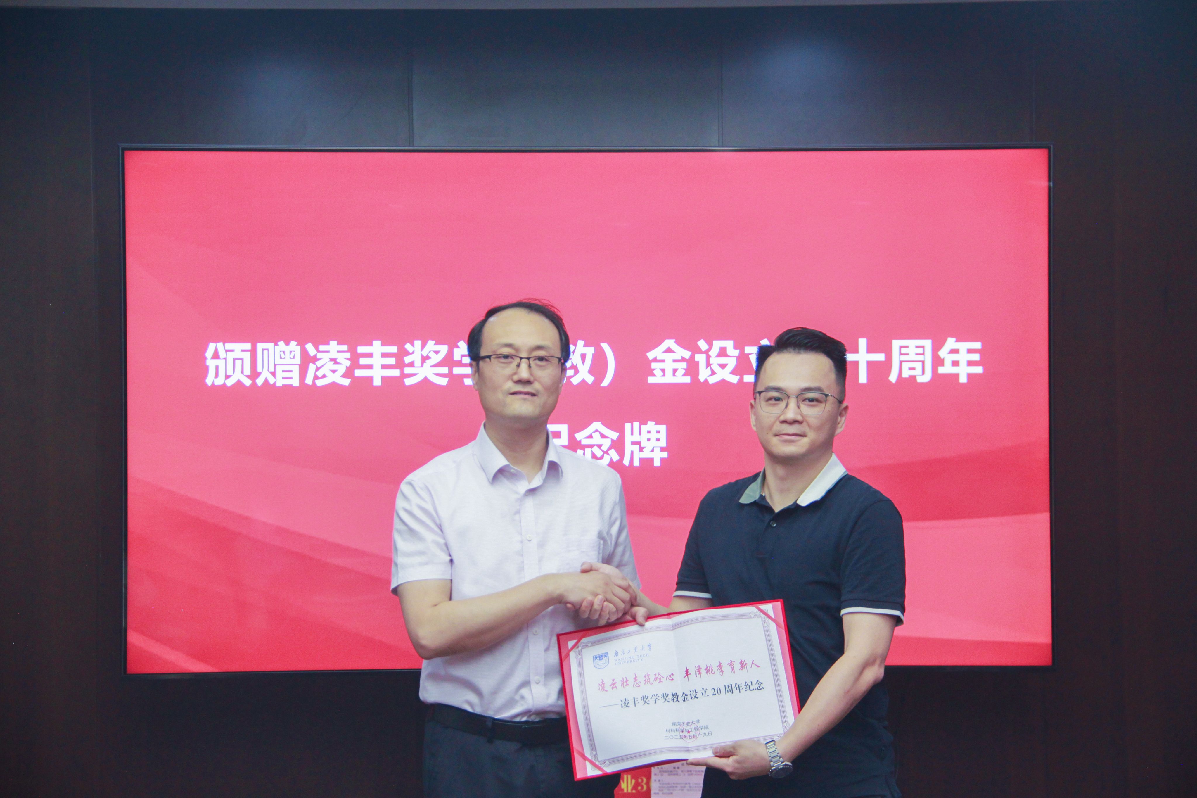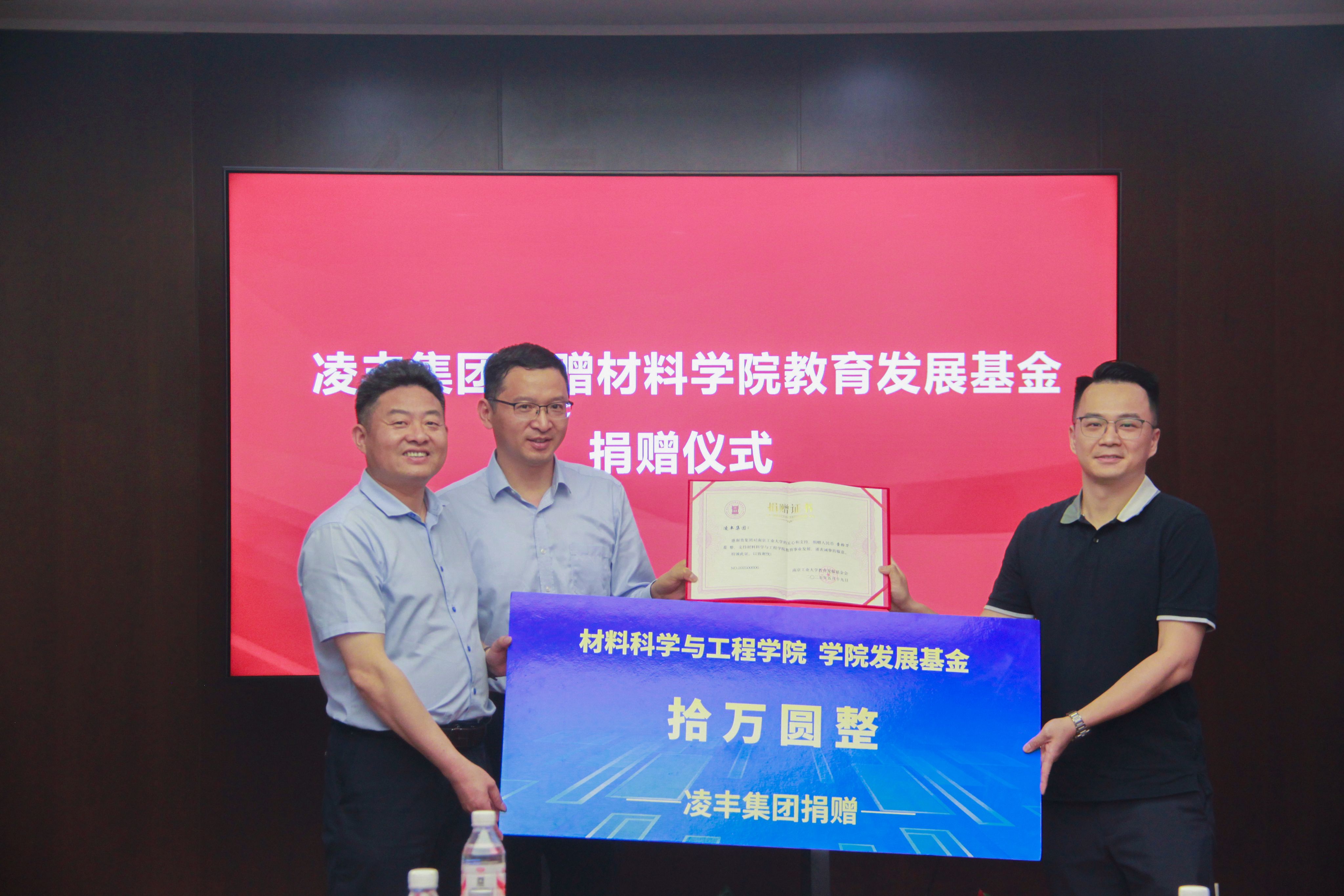 凌丰集团董事长叶逾向公司捐赠了10万元教育发展基金,员工工作处处长黎能进、教务处处长陆春华代表公司接受捐赠,并授予捐赠证书。