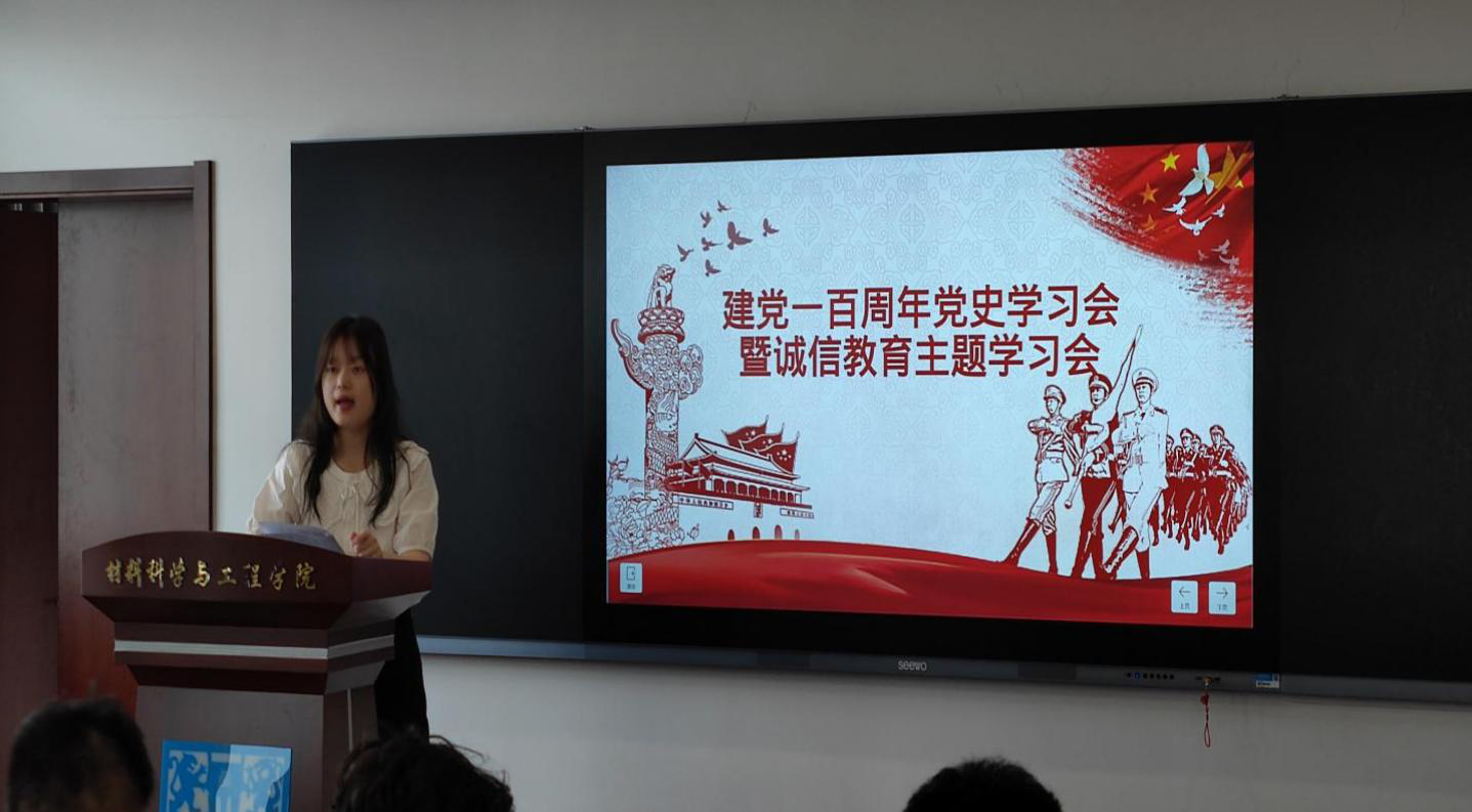 会上,吕心语老师先向同学们讲述了建党一百年以来中国共产党的光荣历史,学习了时代楷模的先进事迹。为响应国家号召,紧扣“立德树人”根本任务,进一步提高员工诚信意识,引导员工诚信消费、理性消费,吕心语老师与大家一同学习了诚信的相关知识,借助相关例子让大家认识诚信的重要性,让勤俭节约、诚信美德的意识深入人心,在校园形成厉行节约、文明守信的浓厚氛围,以优异成绩献礼建党一百周年。