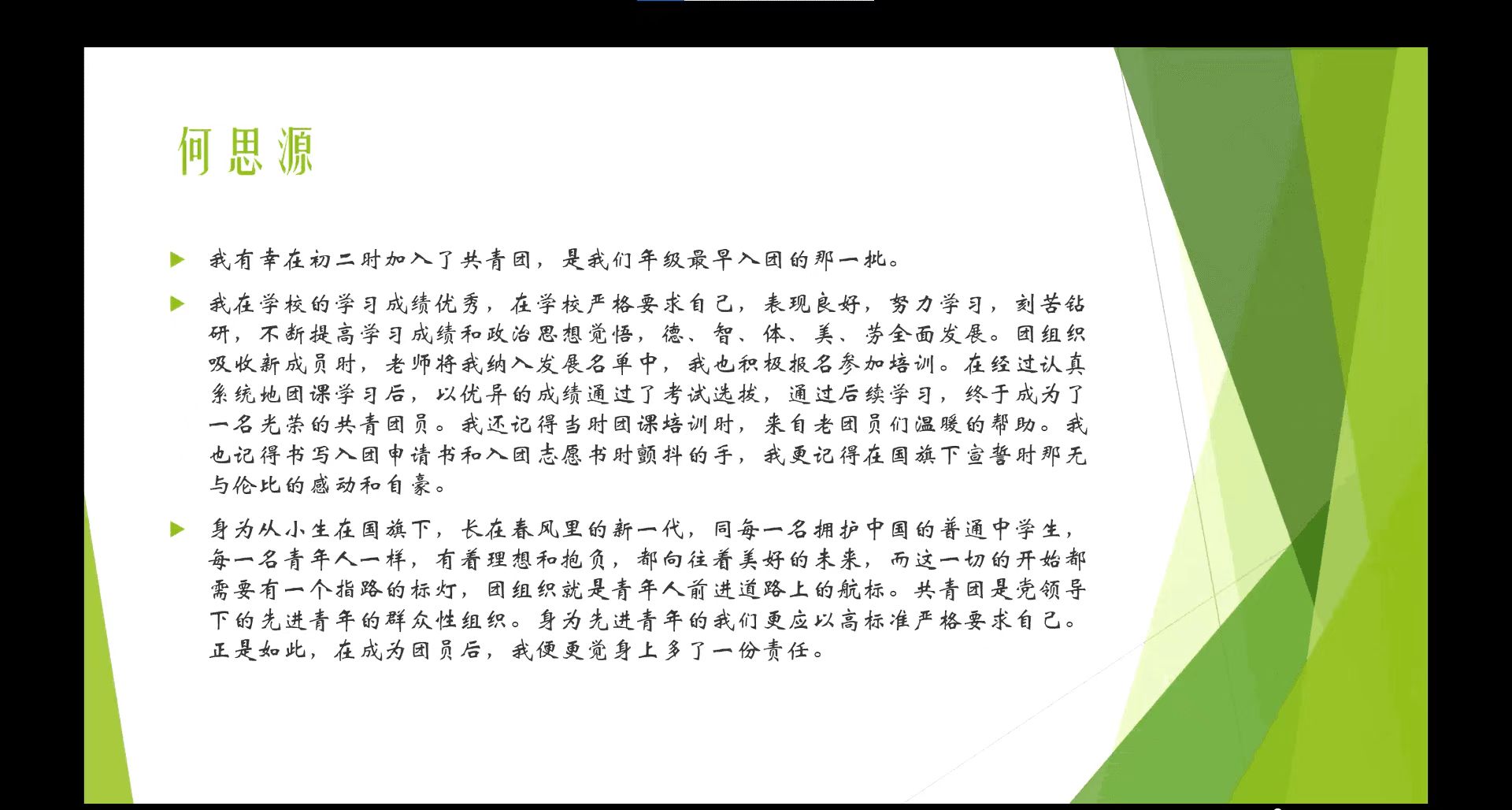 此次青马工程,员工会邀请到了院团委王安全老师、院员工会骨干王毅桢同学以及哈尔滨工业大学张景灏同学为学员们授课。通过他们的分享,学员们更清晰地了解到中国共青团历史和best365足球官网员工会发展史,通过观看短篇《共青团改革综述:在新时代征程中砥砺前行》,学员们对共青团有了更深刻的认知。通过校校联动,张景灝带领员工骨干一起学习《共产党宣言》,在建团百年的当下,青年一代要树立奋发向上、积极进取的精神。最后,全体员工骨干再次重温入团仪式,同学们重新回顾了加入共青团的热情与初心,身处建团百年的时间节点,共青团员的责任感和使命感进一步增强。
