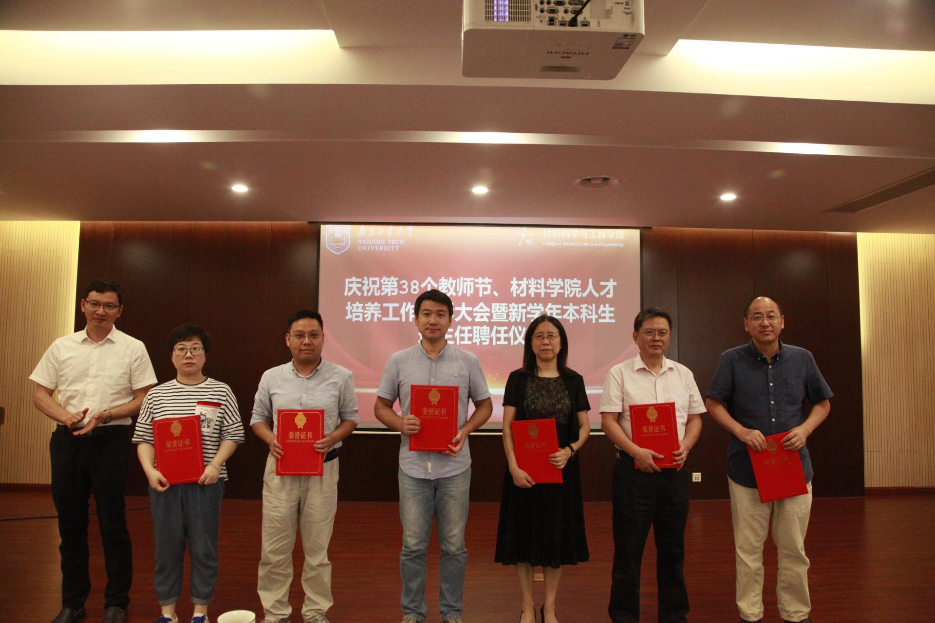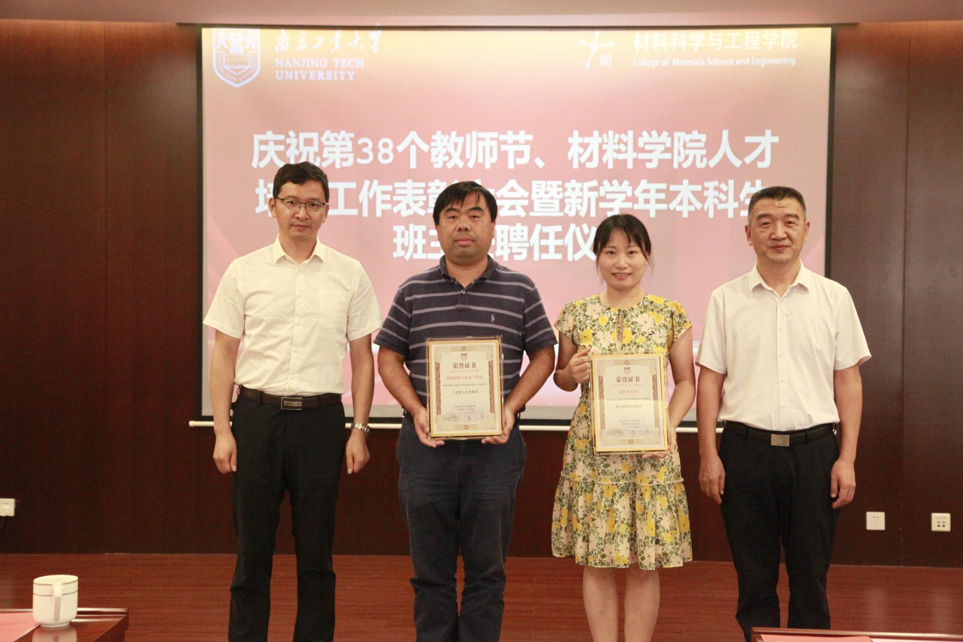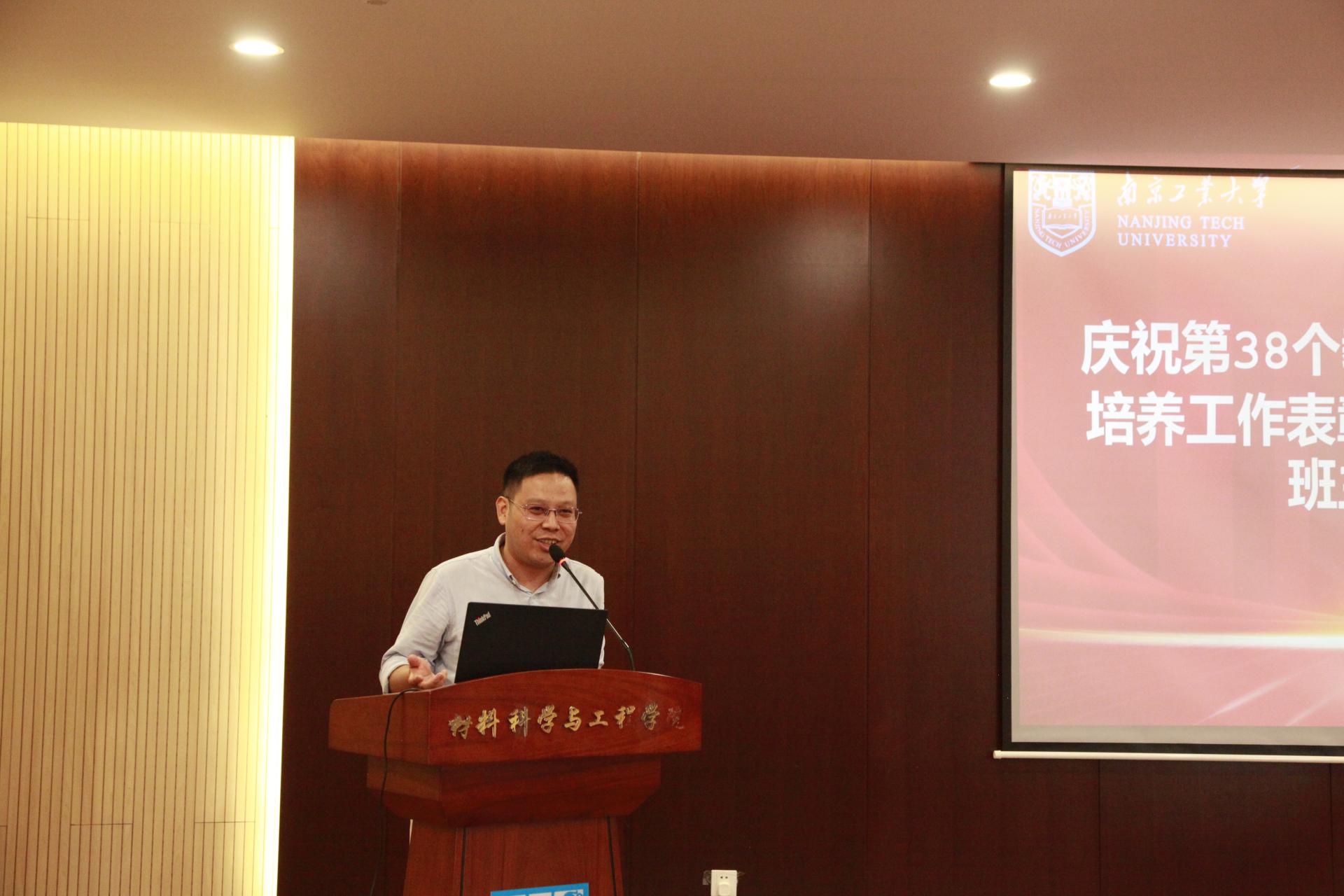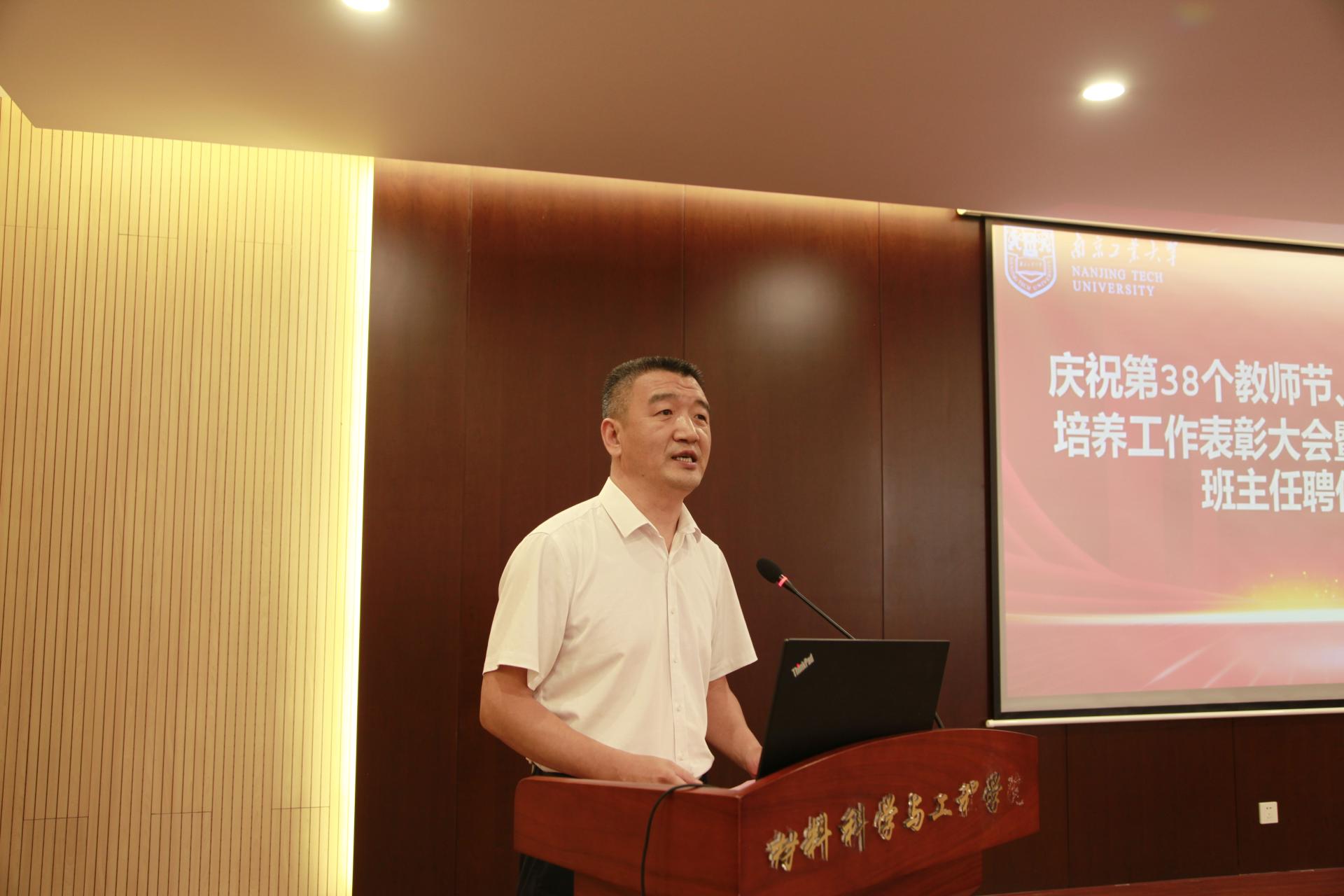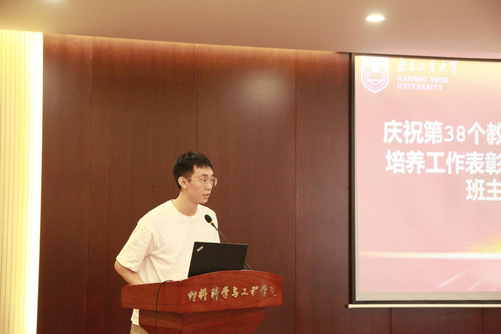 材料(英才)2002班黄铖韬代表全院员工在会上发言,向老师们表达了衷心的感谢和诚挚的祝福。徐广龙、刘雅娜老师作为受表彰教师代表交流了育人经验和体会。