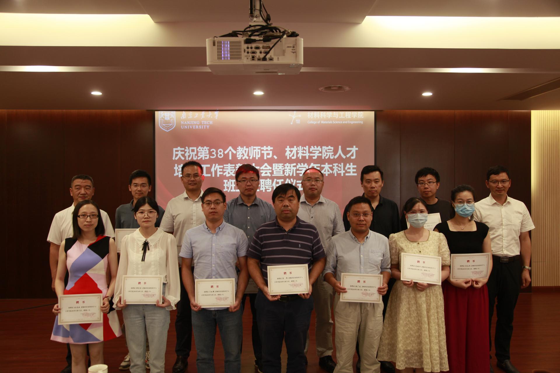 9月9日下午,公司在润德楼B512报告厅召开庆祝第38个教师节、人才培养工作表彰大会暨2021级本科生班主任聘任仪式。公司师生代表参加大会,副经理王丽熙主持大会。