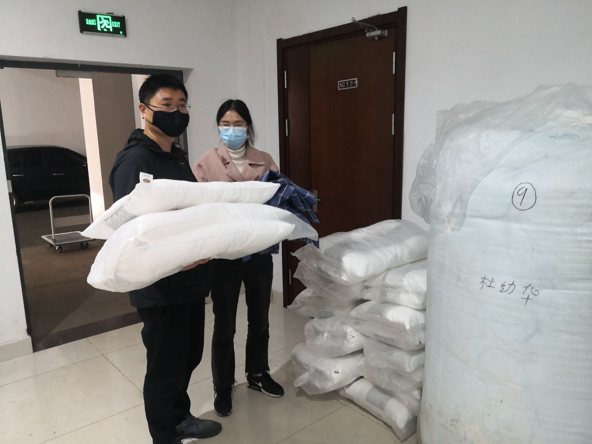为进一步缓解公司后勤保障的巨大压力,满足师生诉求,公司党政办积极联系各方,协调物资,做好疫情期间后勤保障工作,保证暖心服务不断线。公司党政领导第一时间为留校教师员工、来访人员、员工家长等滞留人员协调住处。领导班子成员联系相关系、支部,组建小分队,带领各系教师、辅导员按片区深入员工宿舍,为员工送去暖心关怀与贴心帮助,为宿舍配备口罩、消毒水等防疫物资。教师党员志愿者们为临时住校的教职工领取、分发被褥等生活物资。“虽然疫情挡住了我们自由进出,却挡不住公司对我们无微不至的关怀。公司用实际行动为我们的在校生活提供良好的保障和暖心的服务。”