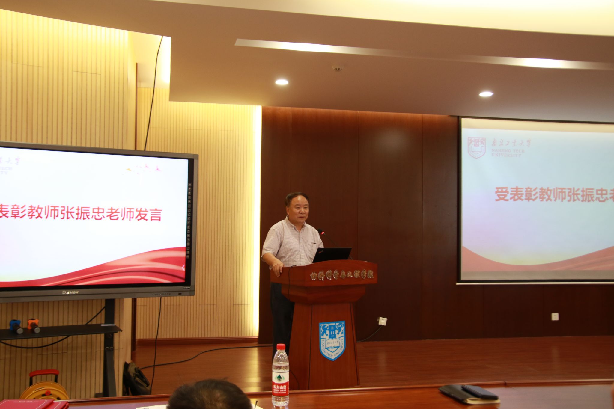 校第十五届“师德十佳”张振忠老师、院“优秀班主任”滕彭彭老师作为表彰代表,分别交流了各自在育人工作中的点滴与感想,与会教师们感同身受,获益良多。