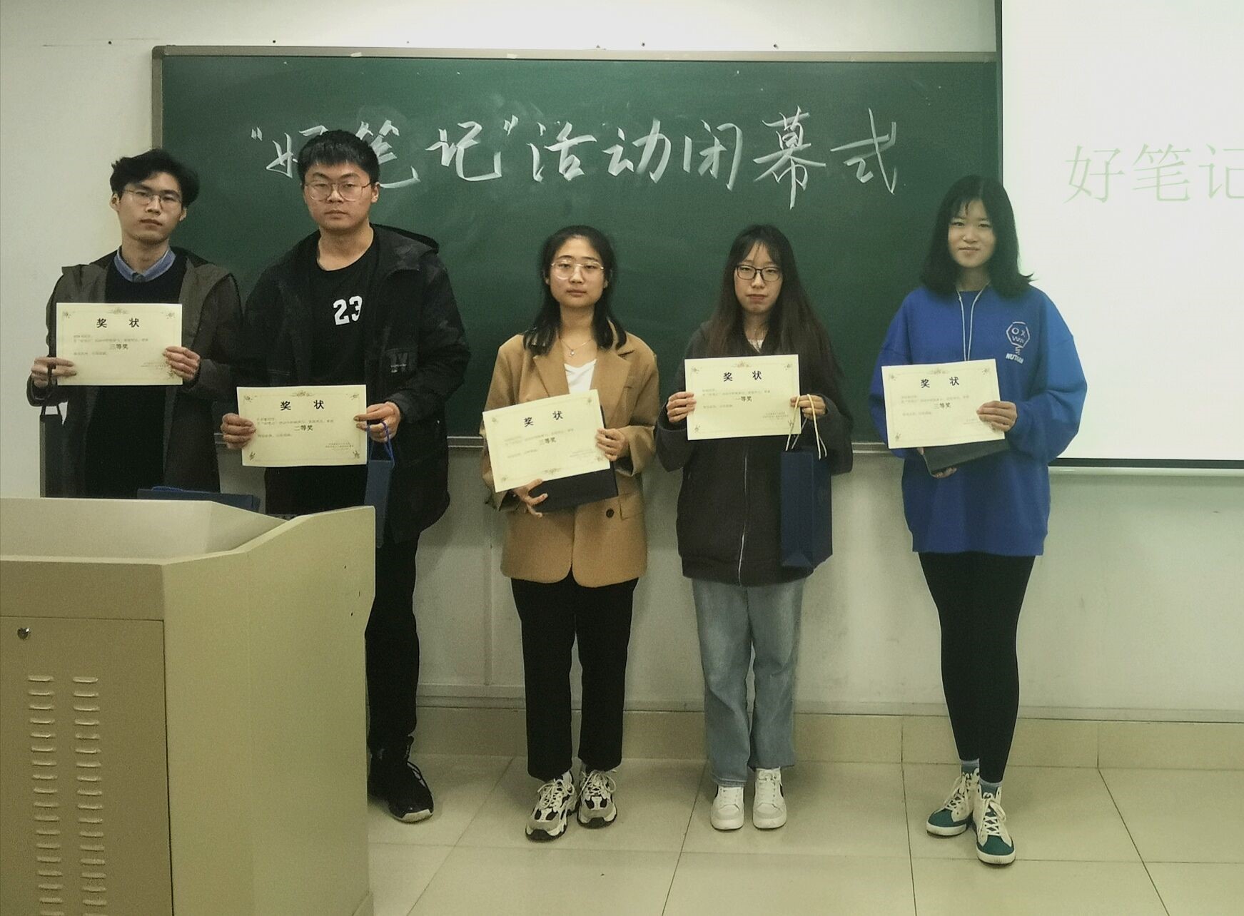 “好笔记”活动启动阶段,收到了近百名同学优秀的笔记作品。活动此次评选过程主要采取线上评选的方式,借助微信公众号展示12名同学优秀的笔记并投票。最终,有6名同学的笔记获得最佳笔记。活动上,刘钟书和石明豪两位同学分别分享了自己记笔记的心得和技巧以及如何使用记好的笔记进行学习。