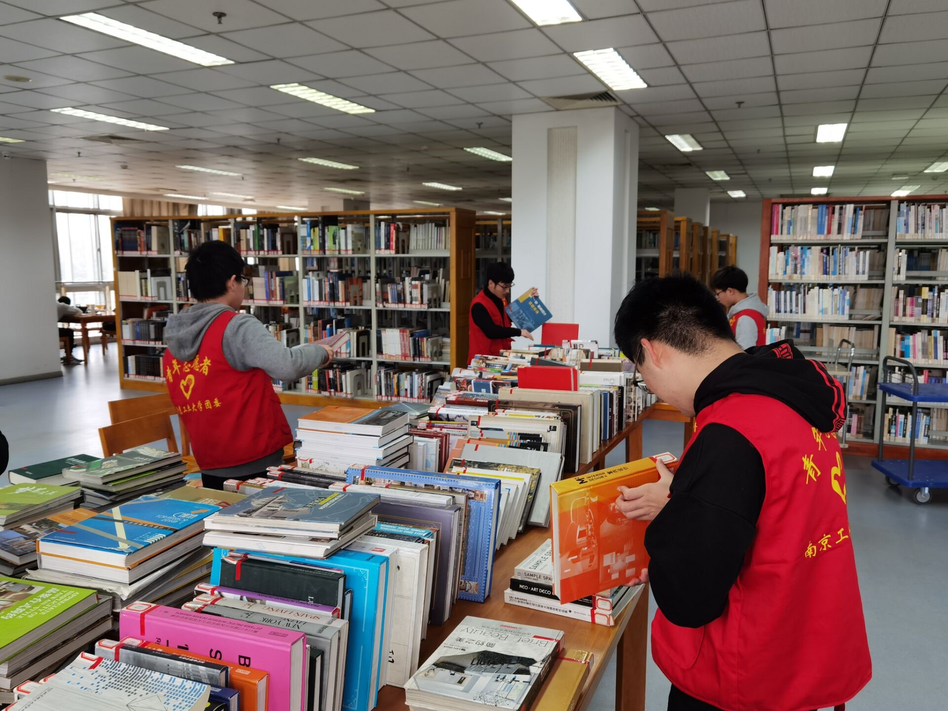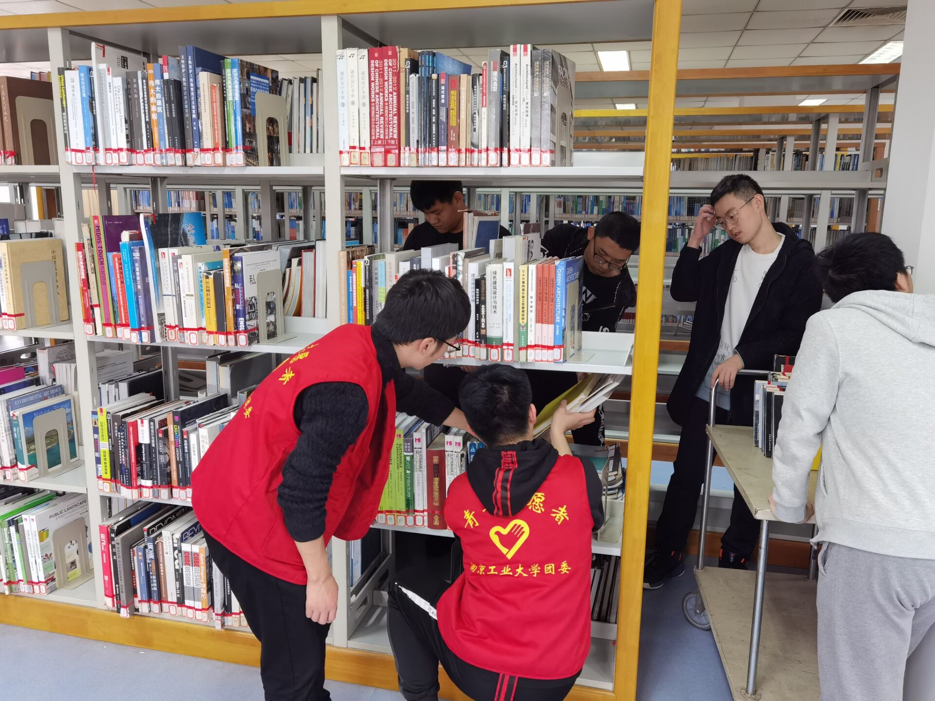 活动期间,志愿者们身着红马甲,每日前往逸夫图书馆进行志愿服务,志愿服务活动由书籍搬运、整理书架和资料汇总三部分组成。志愿者们迅速有序地搬运书籍,细致认真地整理书架,为书籍进行排序。整个活动大家合理分工,相互协作,最终圆满完成了本周的志愿服务活动。