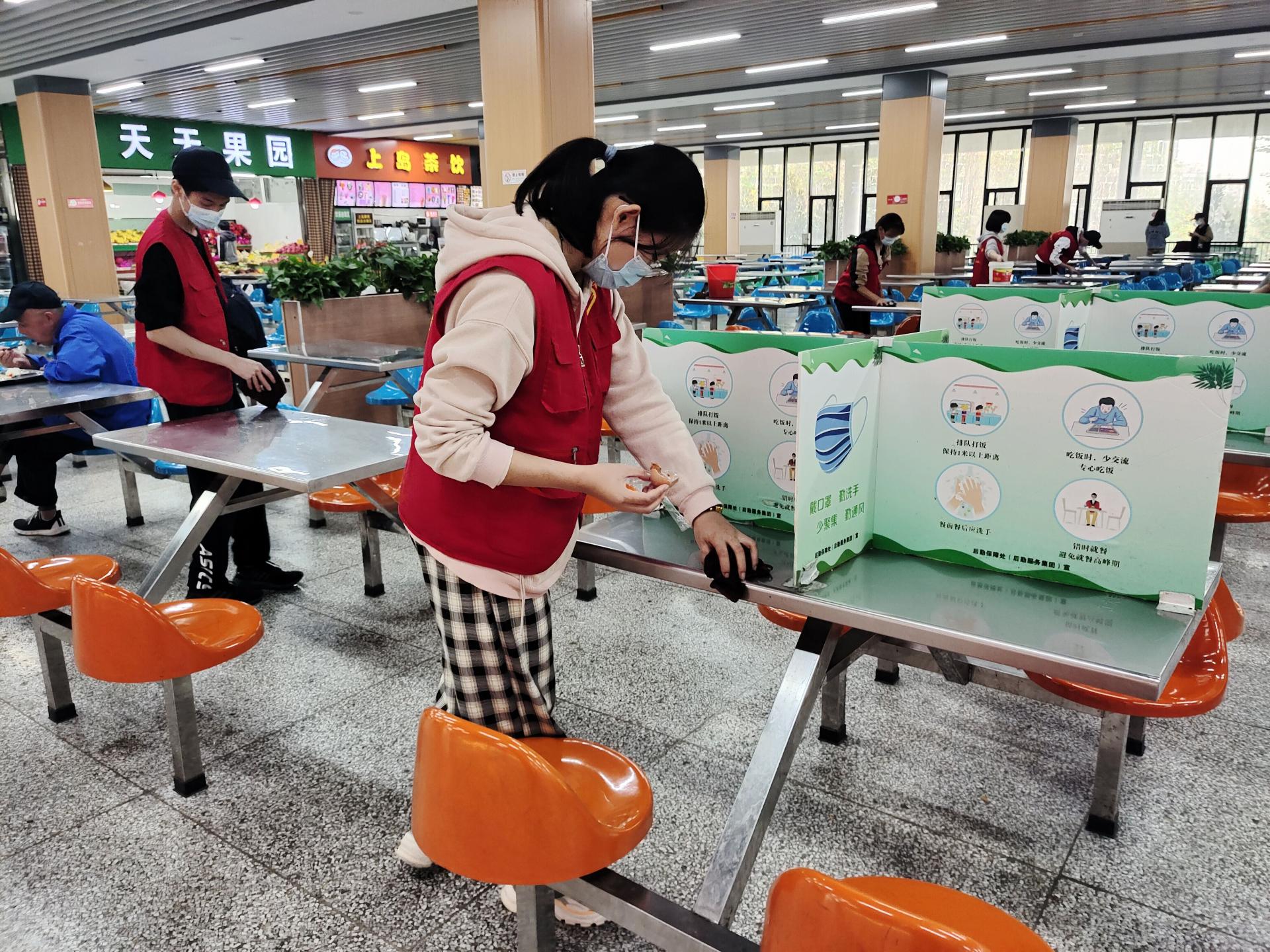 在活动的开始,志愿者在工作人员的带领下了解食堂内部工作环境,向食堂工作人员了解和学习工作任务,接受统一培训,强化自身的责任意识和安全意识。志愿者们在食堂就餐高峰时期开展文明就餐劝导活动,对不文明现象进行劝导,引导员工文明有序就餐,向就餐师生宣传勤俭节约的思想,反对“舌尖上的浪费”。随后,志愿者们一起动手帮忙清洁食堂大厅,打造更加良好的用餐环境,最终较好地完成了本次志愿服务活动。