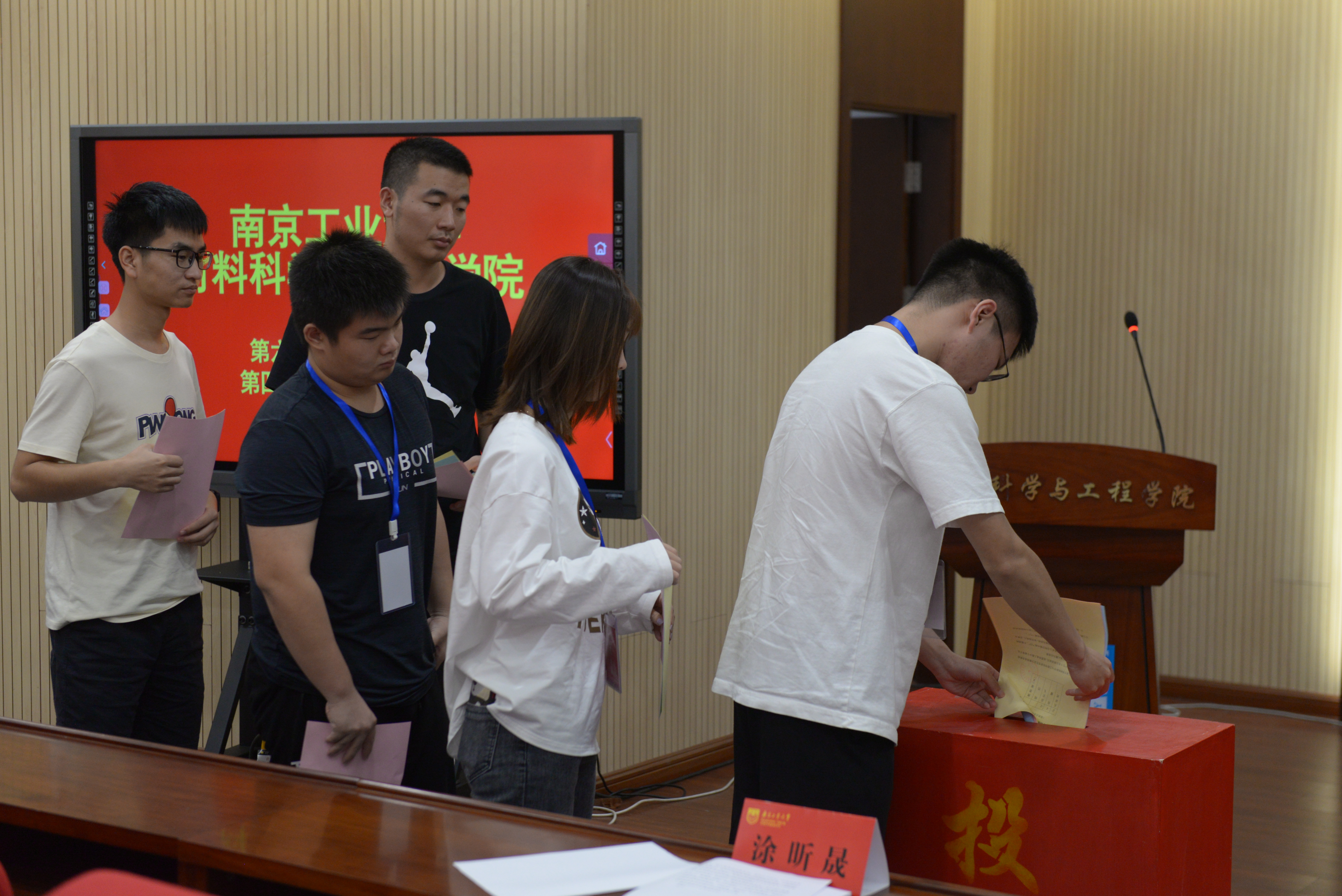 随后,涂昕晟同学代表校员工会致辞,曹李立同学、孔祥明同学分别作了本科生与研究生的学委会工作报告,并进行分组讨论和审议。之后,大会坚持民主集中制原则,通过无记名投票,选举产生了第六届best365足球官网员工委员会委员以及第四届研究生委员会委员。最后,主持人宣布大会闭幕,全体起立,奏唱《国际歌》。