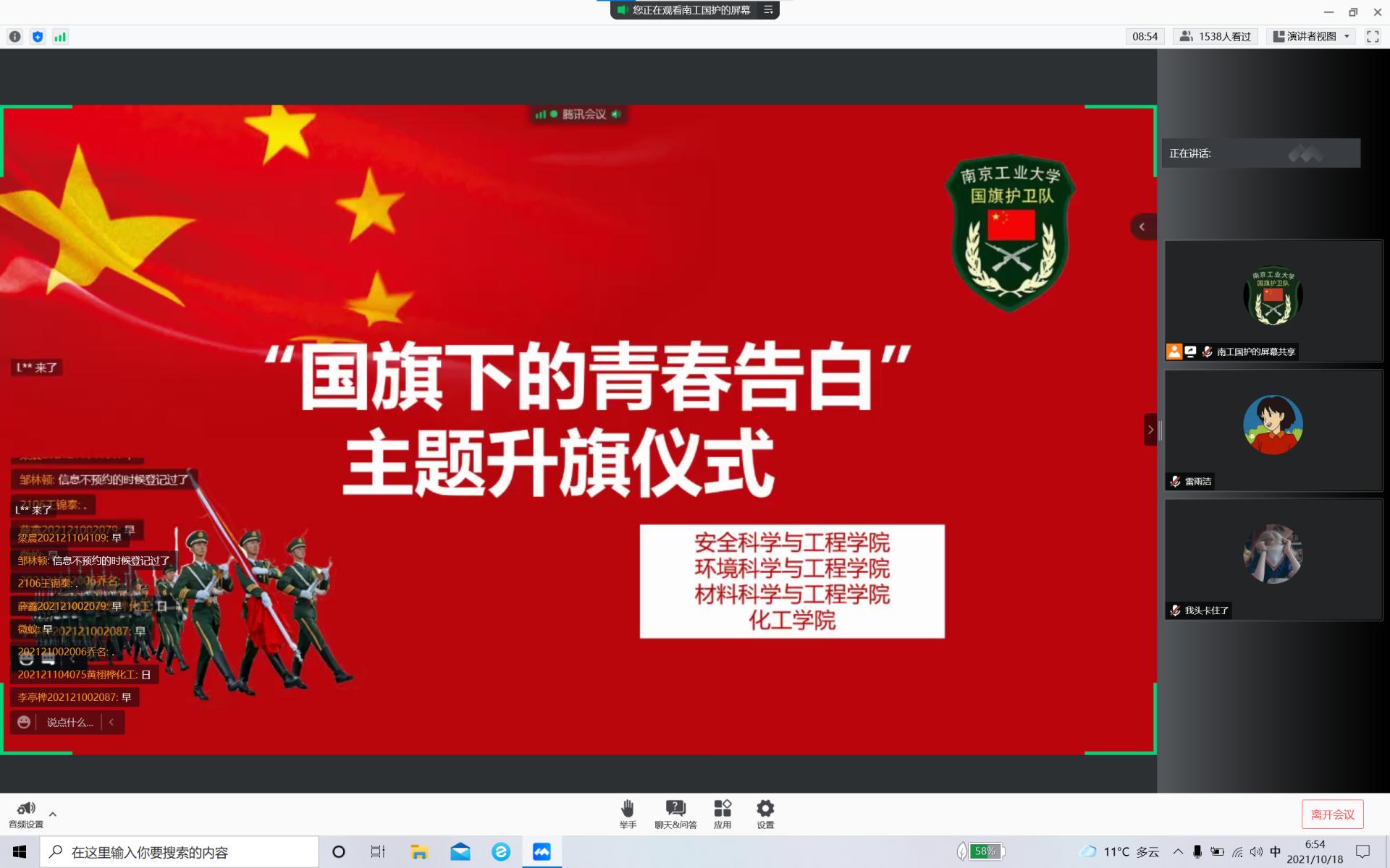 金秋十月,丹桂飘香。2021年10月18日清晨,best365足球官网、环境科学与工程公司、安全科学与工程公司、化工公司联合举行“国旗下的青春告白”主题升旗仪式。材料科学与工程公司党委副书记石防震、21级best365足球官网400余名新同学参加了此次线上升旗仪式。