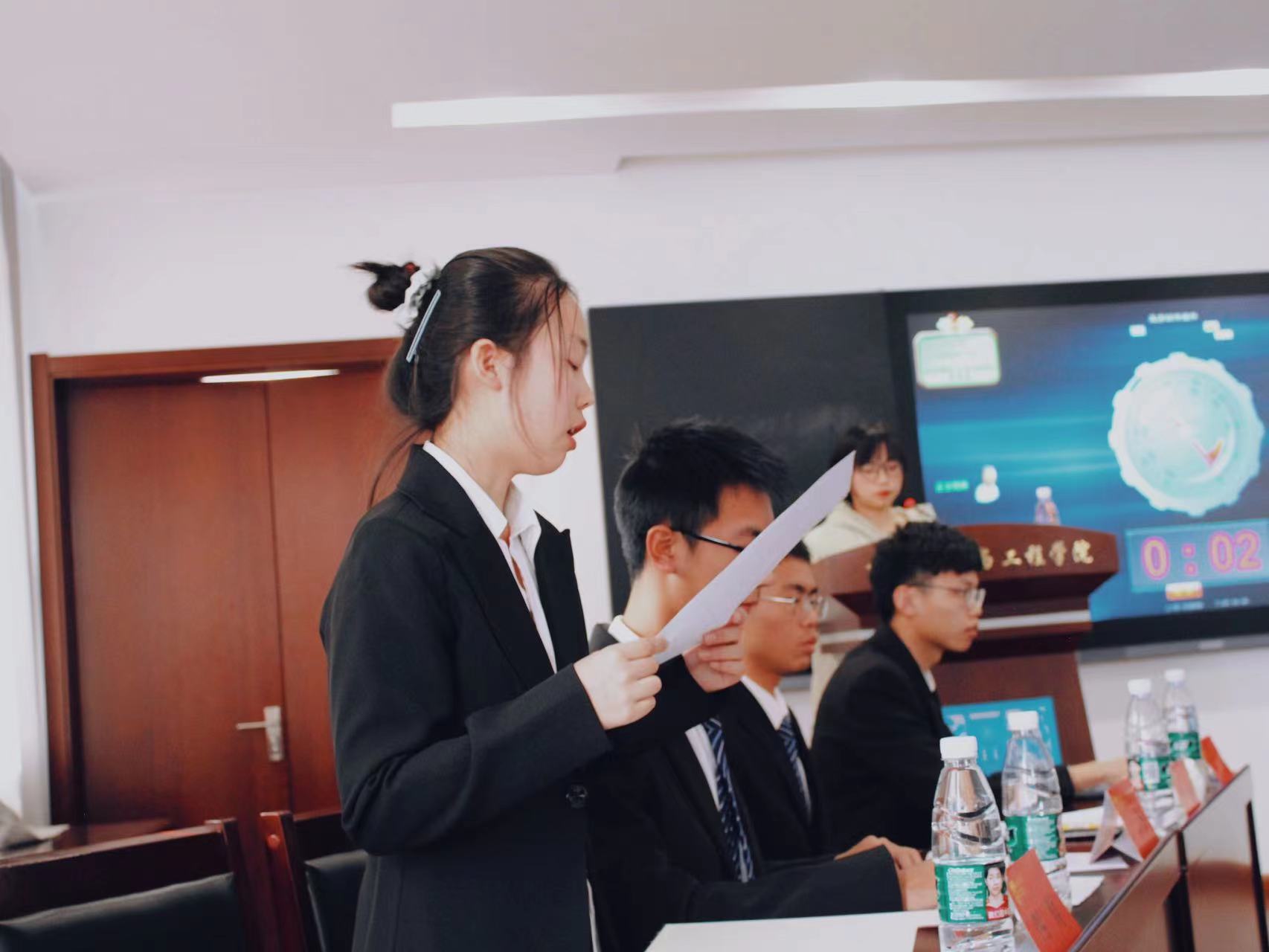 本次比赛由21级辅导员金蓓蓓老师、王旭东老师、院辩论队郁智超同学、何佳艺同学、员工会组织部丁嘉怡同学担任评委,院辩论队成员王静同学担任比赛主持人。进入决赛的两支队伍为材料类2108班和材料类2114班,此次决赛的辩题为“知识大爆炸让知识的获取更容易or更困难”。