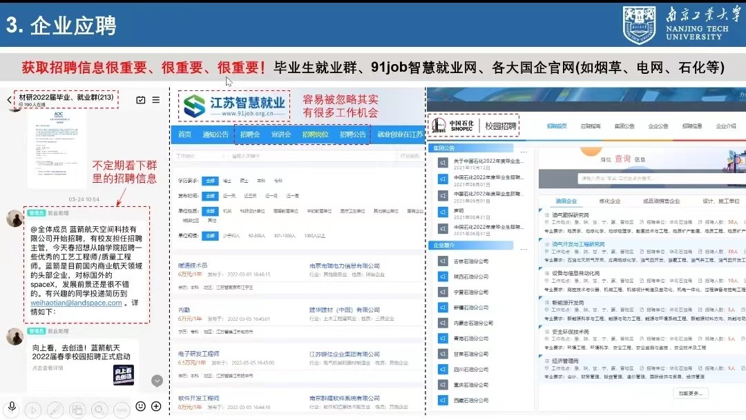 会上,国奖获得者赵一帆和杨张滨首先分享了自己的科研心得,介绍了博士申请考核的相关情况,为学弟学妹们树立了努力学习的榜样,也为有意于继续深造的同学指明了努力方向;曾强强、孔祥明和黄鉴涛总结了一些就业信息获取方式,并分享了就业经验和公务员考试的备考方法;最后,同样优秀并且成功斩获医药研发offer的唐金琼学姐给大家讲述了自己对职业规划的见解,并且对就业感到迷茫的学弟学妹们加油打气。