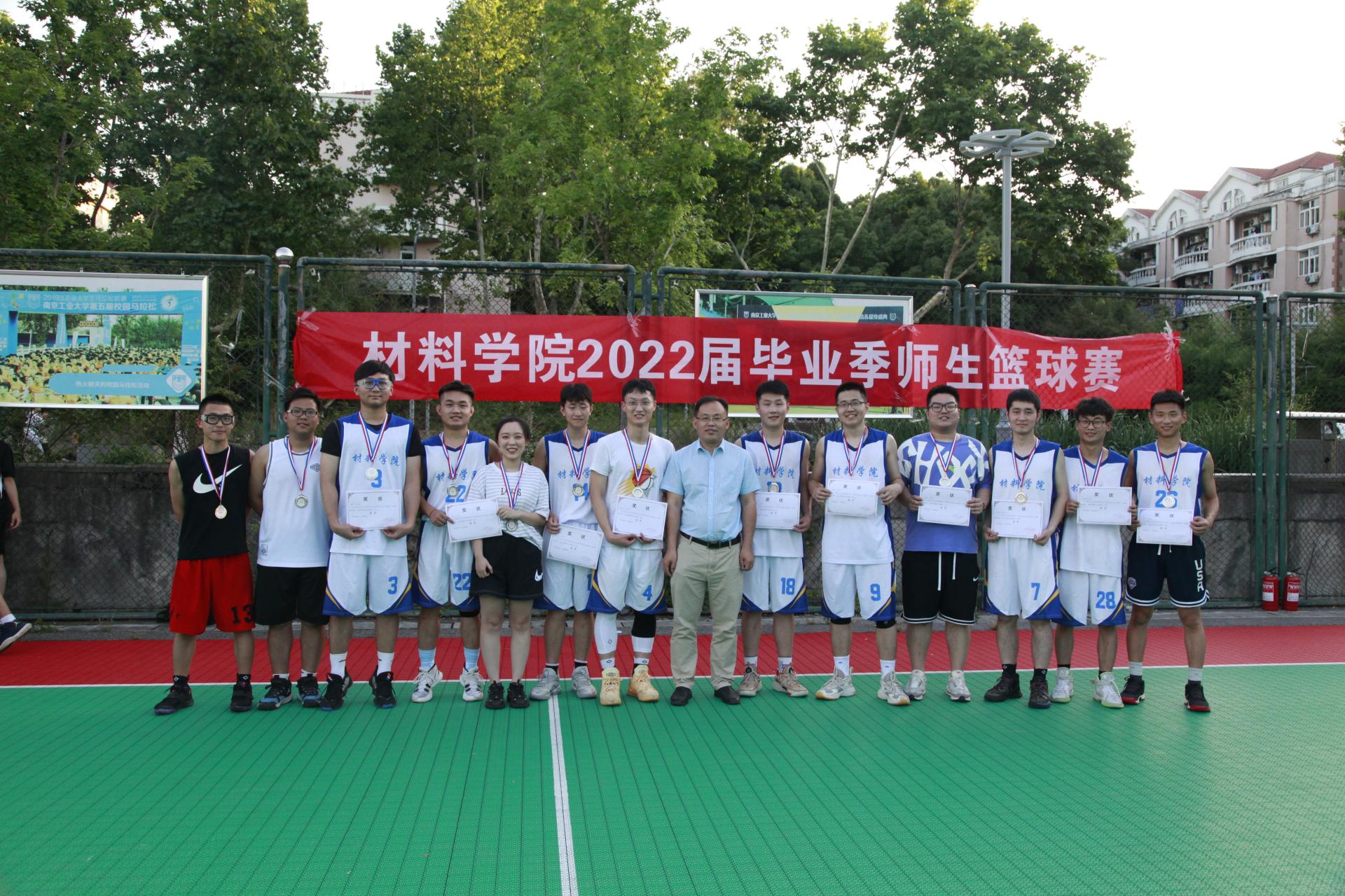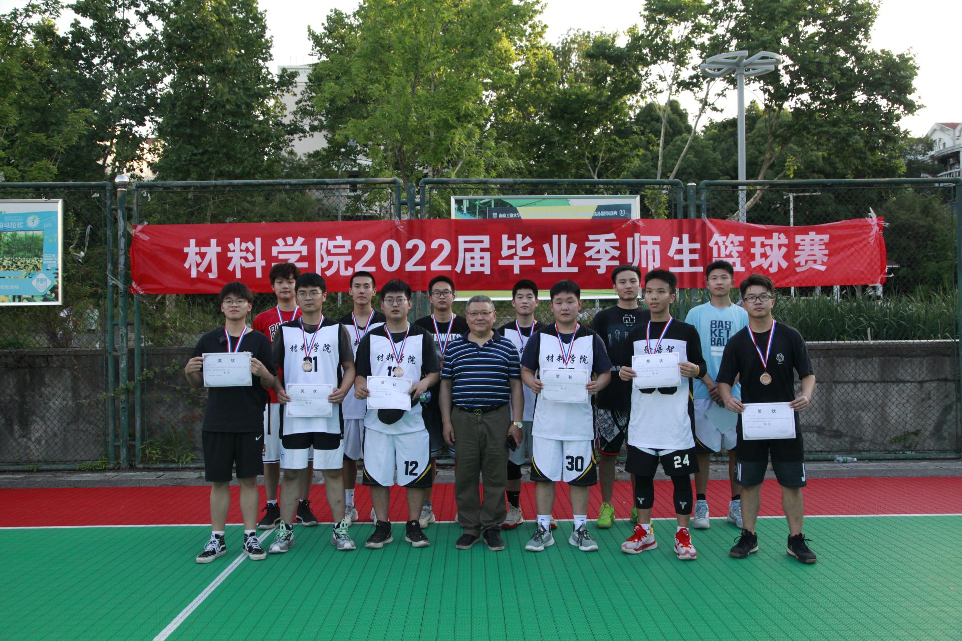 经过三轮激烈的比拼,本科生一队获得冠军,研究生队获得亚军,本科生二队获得季军。6月7日的闭幕式上,高树军书记、石防震副书记、王晓钧教授分别为冠军、亚军、季军颁发了奖状和奖牌。至此,本届毕业季师生篮球赛也圆满结束。