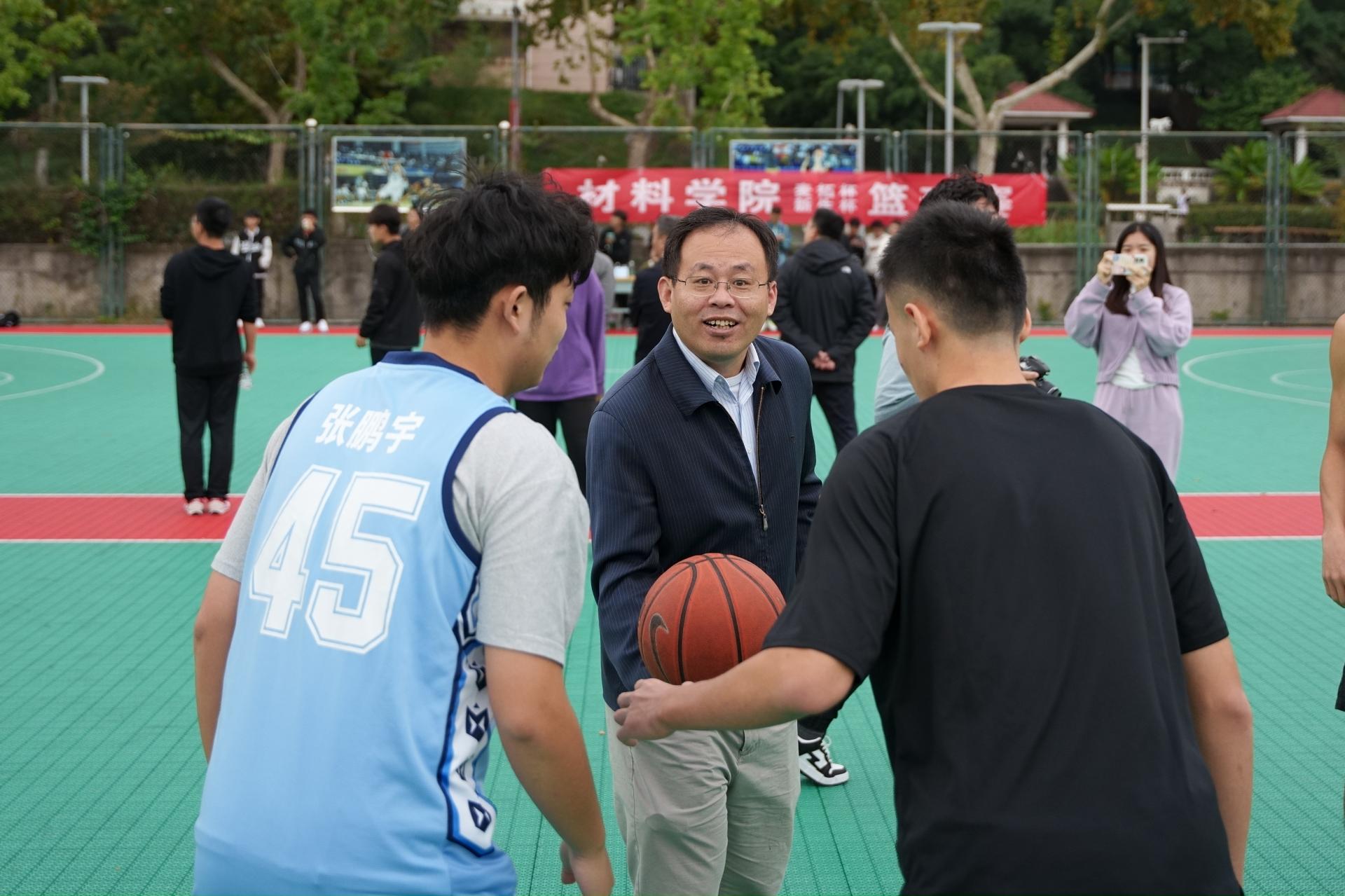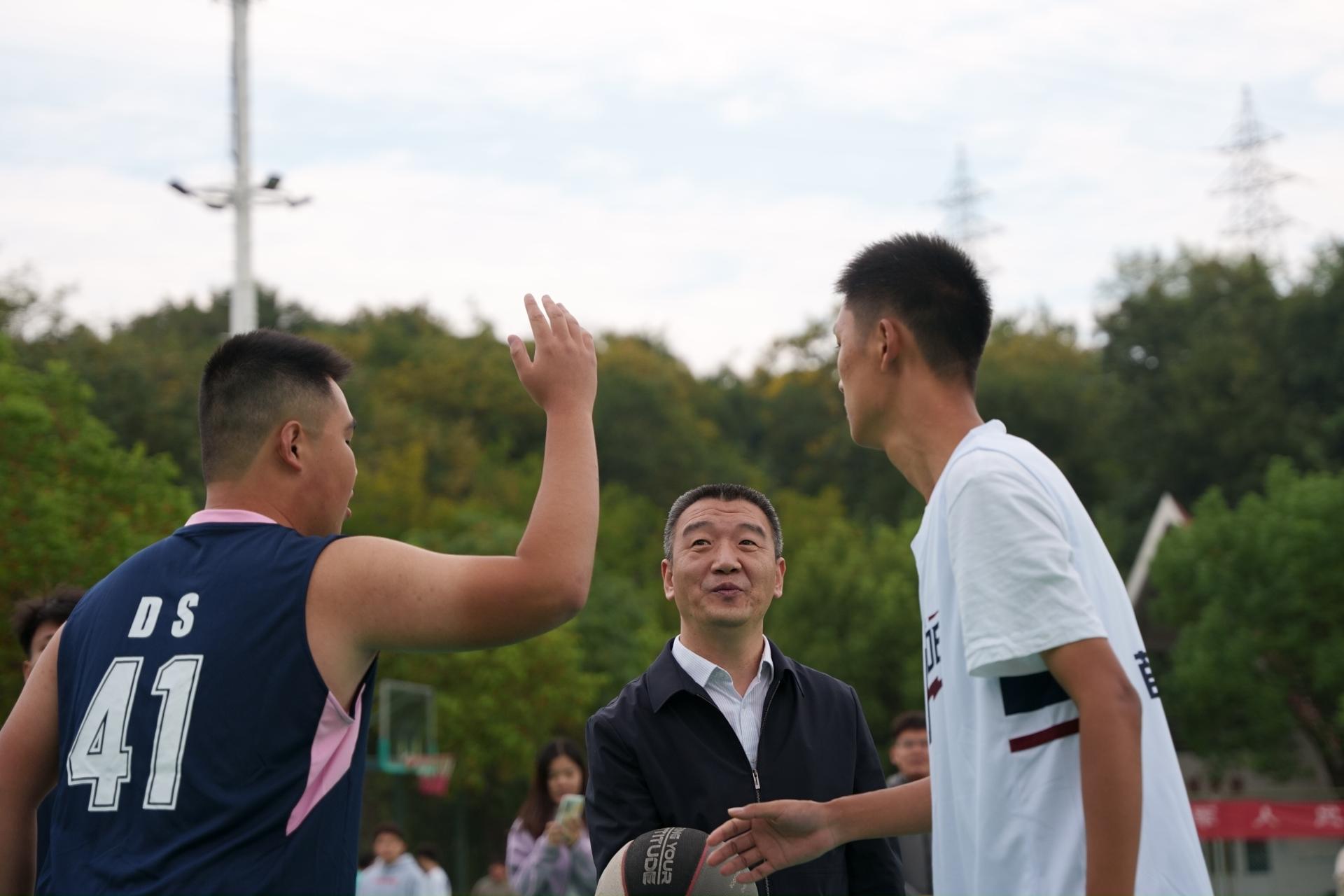 开幕式结束后,“麦拓杯&新生杯”篮球赛正式拉开帷幕,麦拓杯&新生杯的揭幕战由高树军书记和石防震副书记分别进行了开球仪式。篮球被高高抛起,比赛一触即发,运动员们在场上你争我抢,也引起观众们此起彼伏的欢呼。