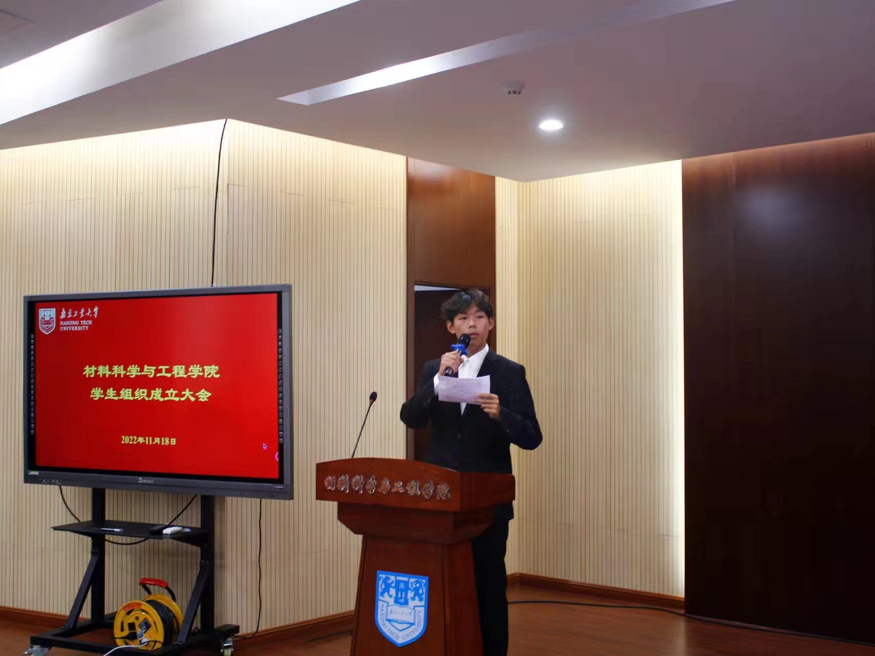 团委指导老师王安全希望员工会干部要始终坚持为师生服务的出发点,发挥好模范带头作用,并对全体成员提出了殷切期许。员工组织代表彭道富和部长团代表张建坤先后表达了对新成员的热烈欢迎,分享各自的工作经验,强调全体成员要团结协作,对新成员们给予美好的祝愿。材青代表董益铨同学也以新成员的身份表示将致力于服务公司、服务师生,并对自我作出严格要求。接着,三位指导老师依次为员工会干部颁发聘书。会上,员工会下设四个中心与工作室分别进行述职汇报。
