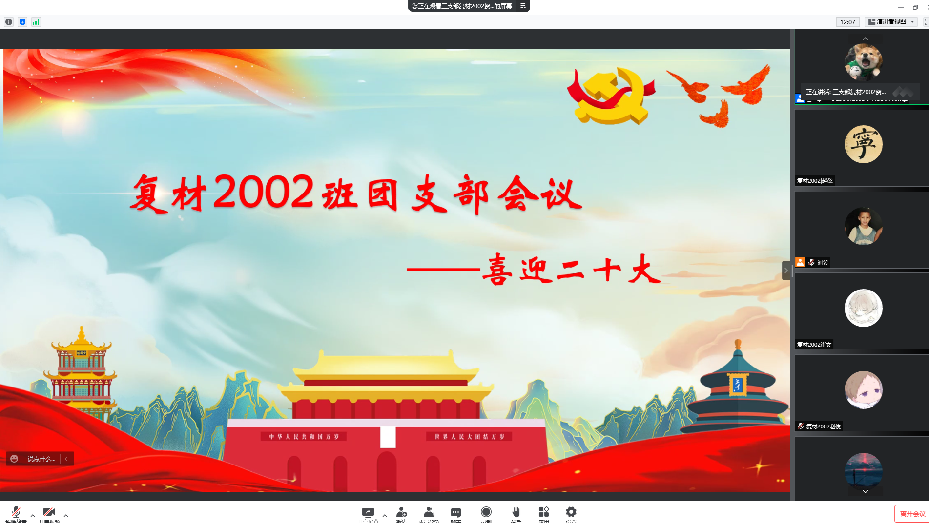 疫情当前,不挡材子风华,一堂不“疫”样的“云”团课,展现了当代青年踔厉奋发的精神风貌。同学们同心战“疫”、同心向党,在党旗的引领下勇毅前进,在团旗的飘扬中砥砺前行。