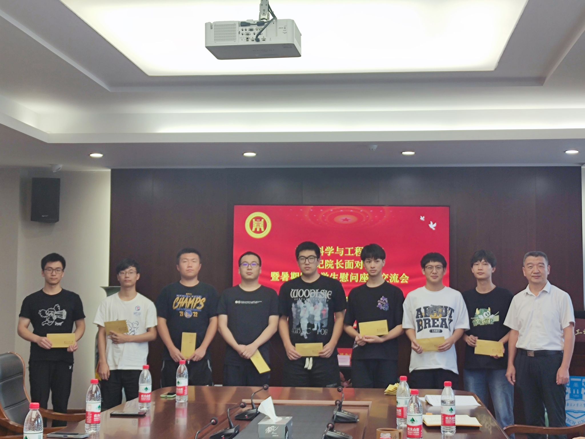 会后,高树军书记、崔升经理分别为暑期留校员工送上慰问餐券,学办主任丁楠、辅导员彭超前往象山苑、檀香苑、西苑员工宿舍走访慰问暑期留校员工,并为同学们送上慰问物资。