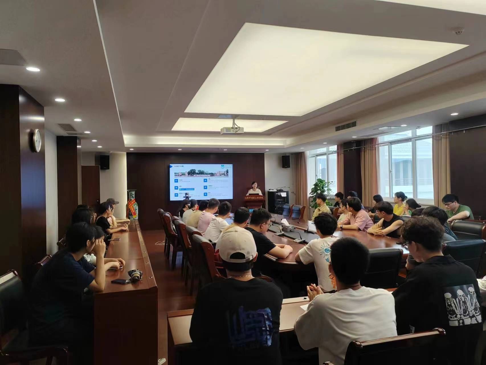9月8日,新生入学报道第二天,2023级研究生辅导员张宇面向新生开展了“踔厉奋发、勇毅前行”主题班会,强调了校规校纪,并详细介绍了公司的奖助贷政策、荣誉体系、党员发展等方面的政策和要求,为员工追求全面发展提供了前进的路径遵循。