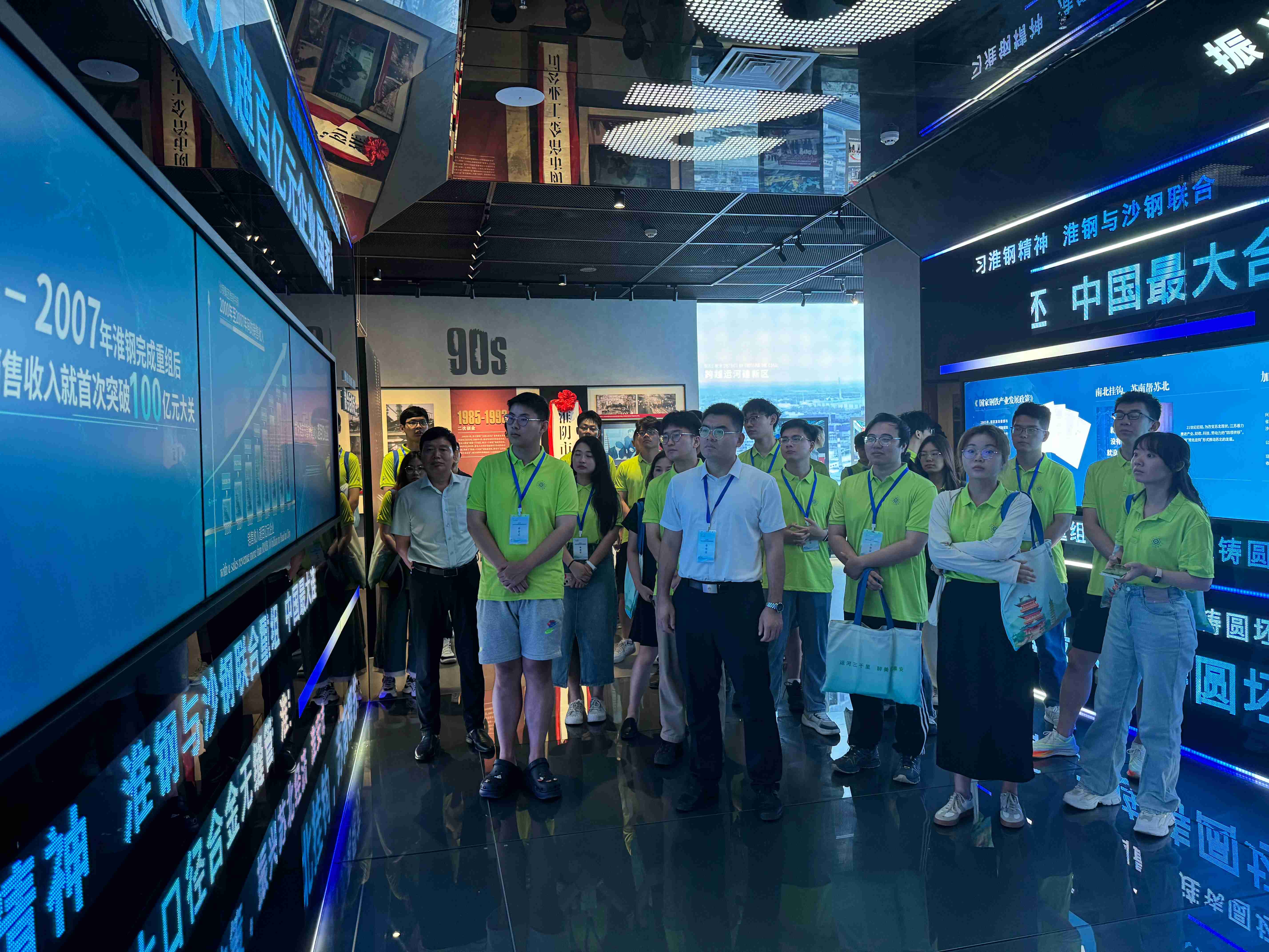 7月23日上午,在淮安市人才中心老师的引导下,best365足球官网团委书记王安全和团队成员前往淮安特钢交流学习。工作人员详细介绍了淮安特钢在新材料研发、环保技术应用等方面的探索,以及提升产品质量和生产效率、引领行业发展的策略。团队成员深入园区内部,亲眼见证了现代钢铁生产线的精密运转和高效生产流程,进一步理解了科技创新对产业升级的重要推动作用,明确了将学术研究与实际生产紧密结合的目标。