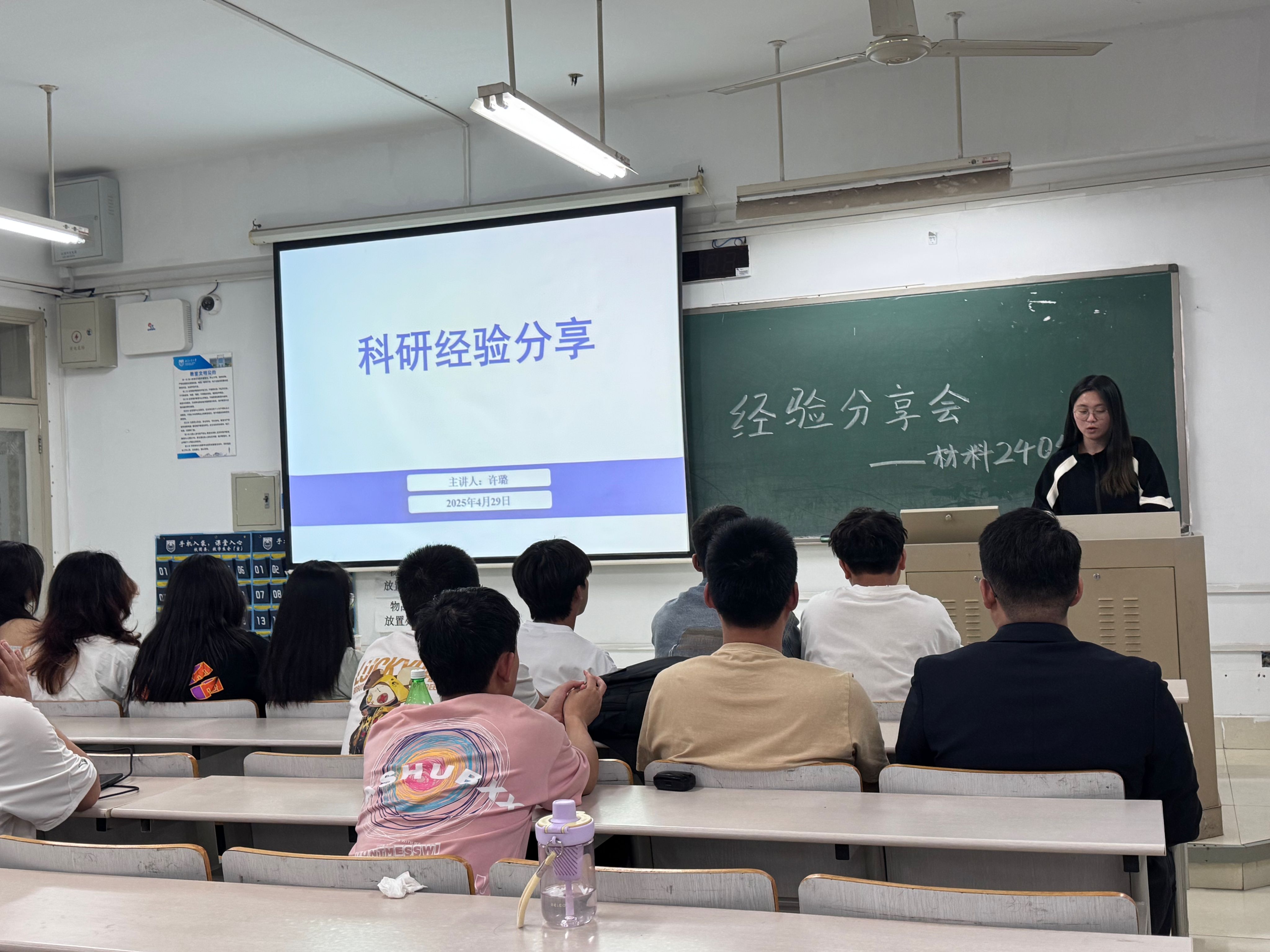 为帮助员工提升科研素养,拓展学术视野,材料2404班于4月29日举行科创经验分享会。22级许璐、柯志鸿、24级阚司源围绕老员工创新创业项目、导师选择策略、免试攻读研究生解读等内容展开分享。