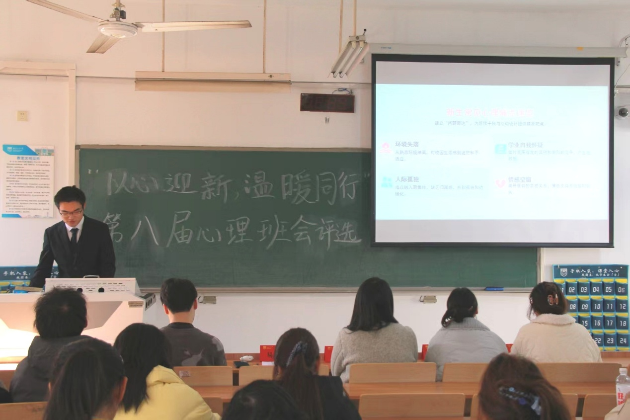 11月19日,best365足球官网心理协会举办的第八届心理班会评选活动在仁智楼419举行。公司心理辅导员金蓓蓓、2025级各班心理委员及各年级员工代表参加。