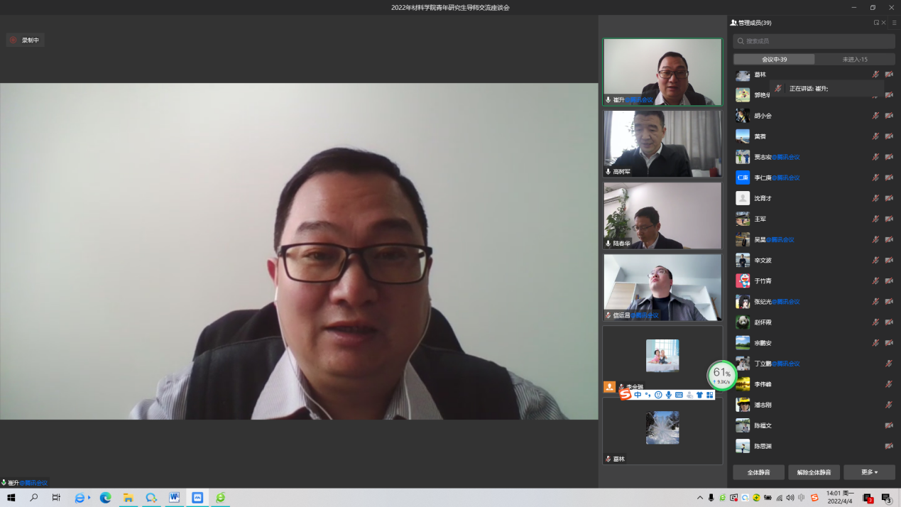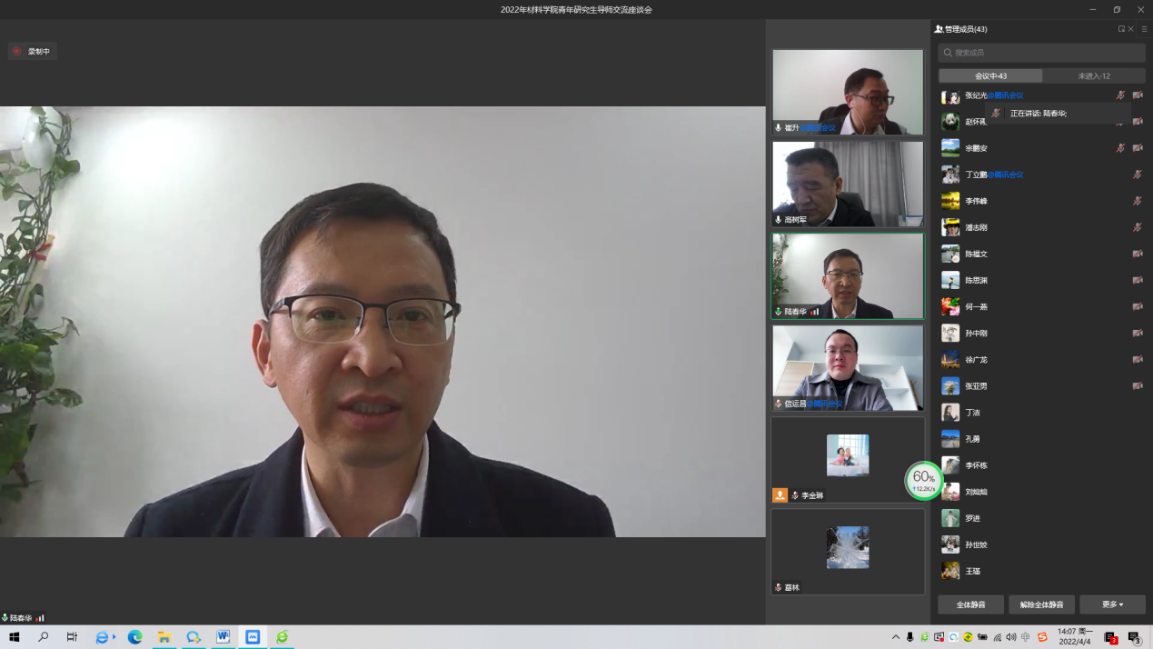 为进一步加强青年研究生导师队伍建设,提升导师指导水平,4月4日下午,best365足球官网召开青年研究生导师线上交流座谈会。best365足球官网、轻质中心40余青年研究生导师代表参加了此次会议。