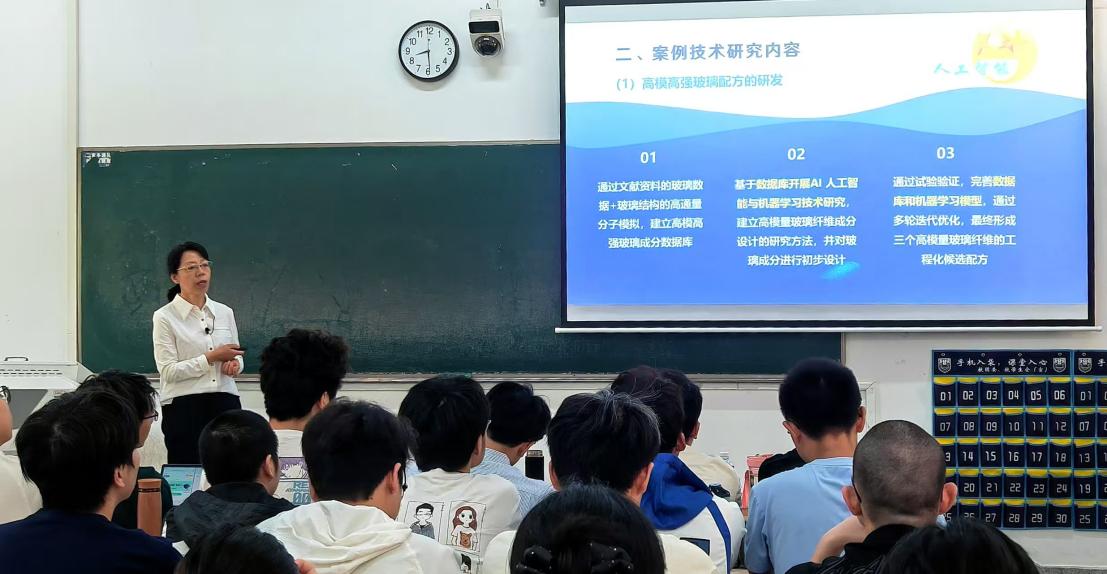 4月28日,常州天马集团有限公司(原建材二五三厂)与best365足球官网产教融合教学团队负责人、江苏省产业教授宣维栋以“高模高强玻璃纤维及智能织物研发案例精解”为压轴授课,通过"人工智能+复合材料"的实际应用,展示了我国在高端材料领域的技术突破。宣维栋教授以自主研发故事为切入点,阐释了“从实验室到实际大规模生产”的攻坚历程,并从新质生产力的视角分析技术创新的经济与社会效益。