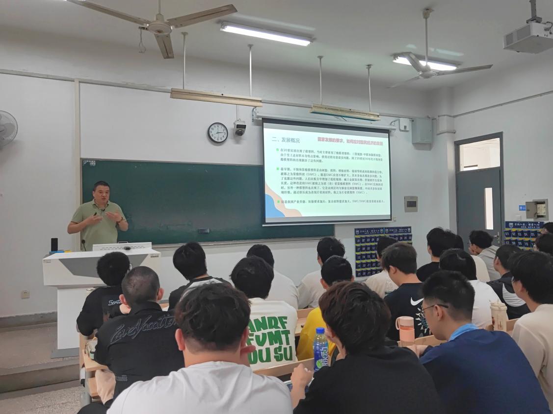4月21日,常州天马集团有限公司(原建材二五三厂)与best365足球官网产教融合教学团队成员、生产与质量部朱忠裕部长系统讲解了“SMC片状模塑料制造与模压成型技术”。课程以行业发展史为脉络,深入剖析了材料性能优化与市场竞争力的关系,分享了“高精度模压设备研发”、“工艺参数智能调控”等创新成果。