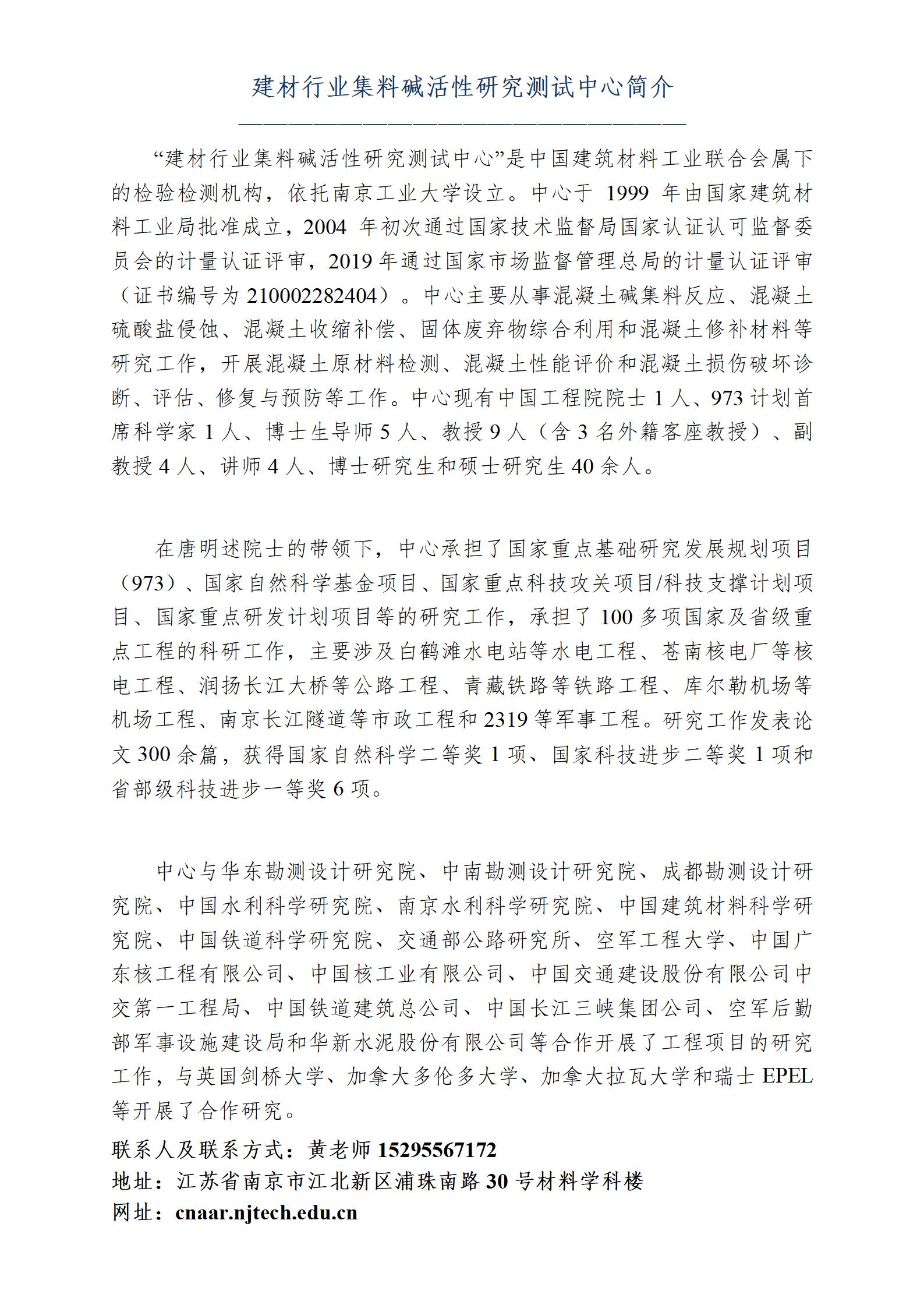 中国建筑材料联合会:建材行业集料碱活性研究测试中心