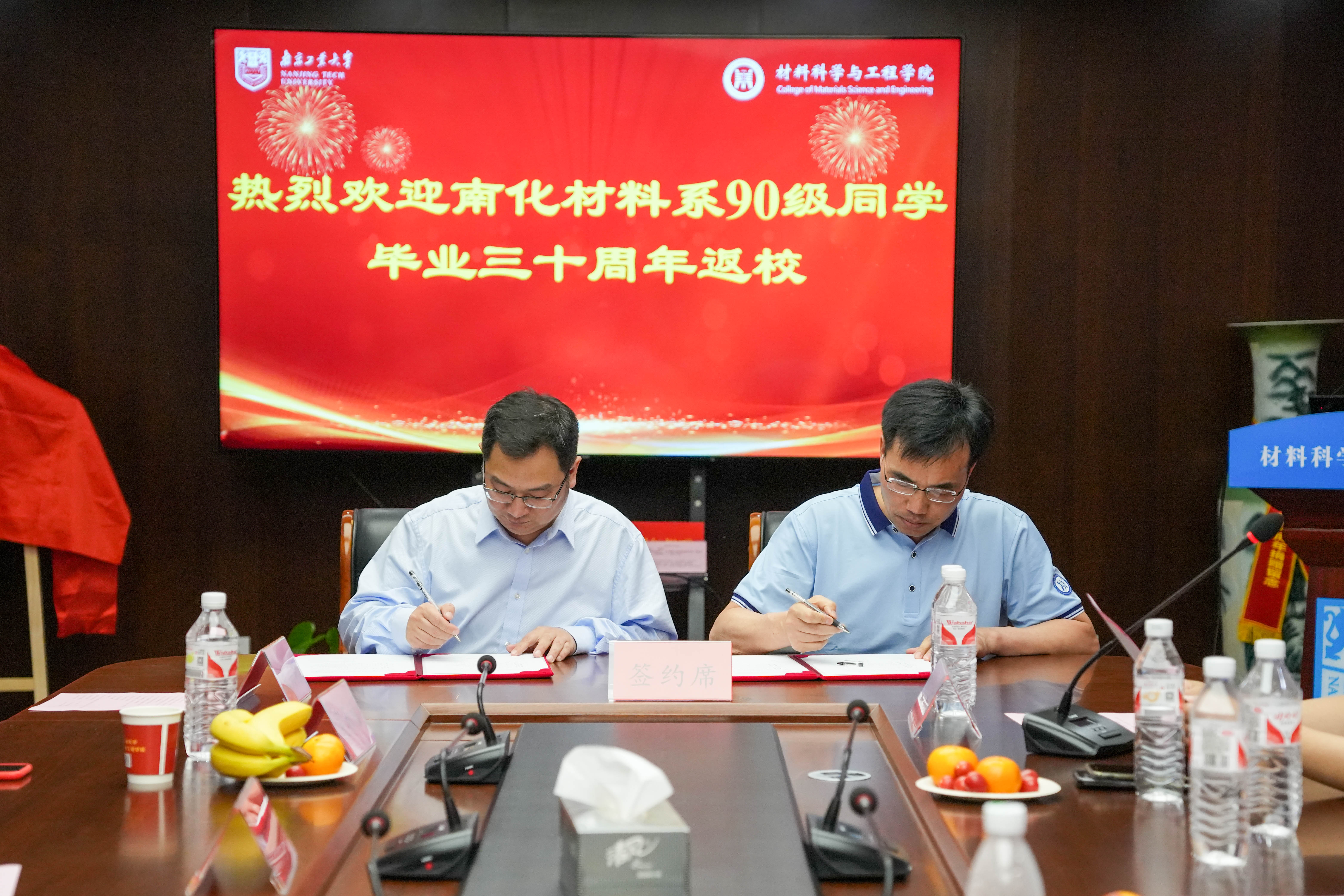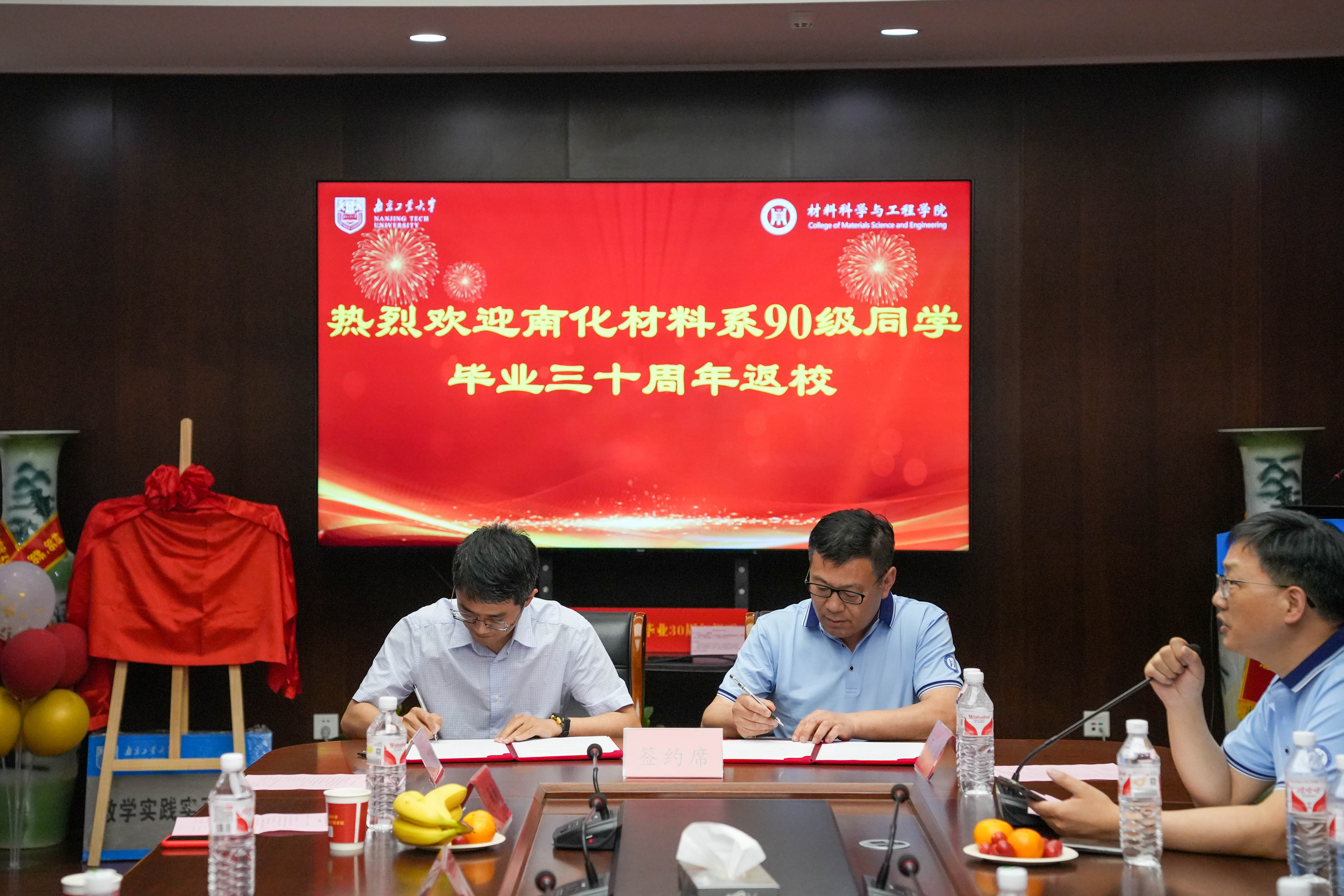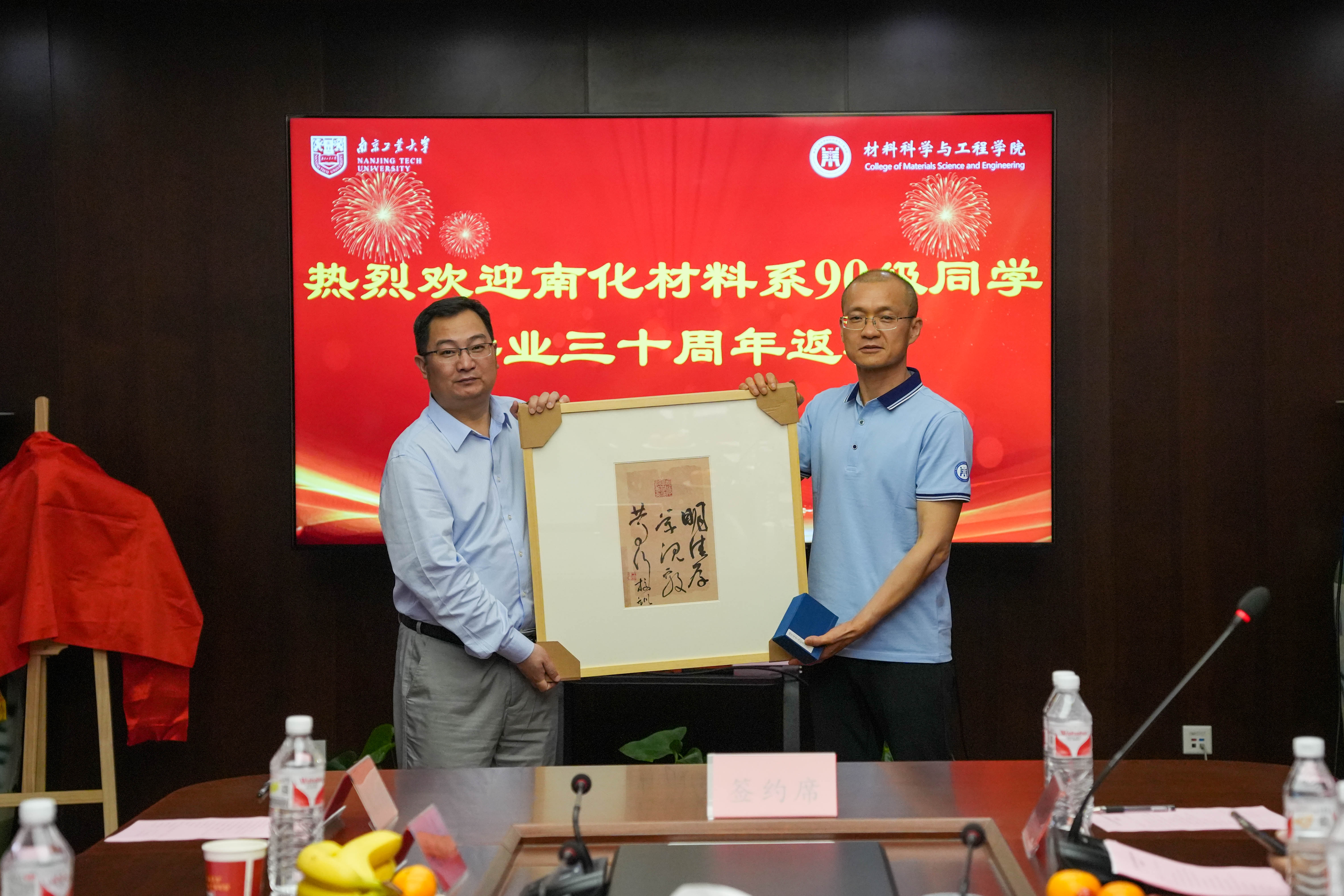 崔升经理欢迎员工们的到来,他向员工们介绍了公司发展的成就,员工们纷纷感叹公司三十年来取得的巨大进步,对母校的辉煌成就感到骄傲与自豪。员工企业大连天新表面工程有限公司代表人张天新、苏州海纳科技有限公司代表人徐卫东分别与公司无机材料与工程系副主任葛林签订了人才培养教育实习基地协议,党委副书记石防震代表公司向两家员工企业进行了授牌。员工代表沈纪平与公司签订了助学金捐赠协议,并向公司赠送了字画及篆刻作品,以此表达对母校的感恩之情,崔升经理代表公司接受了捐赠,并向员工们颁发了捐赠证书。