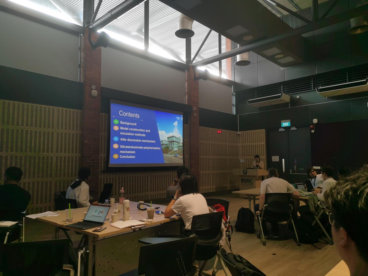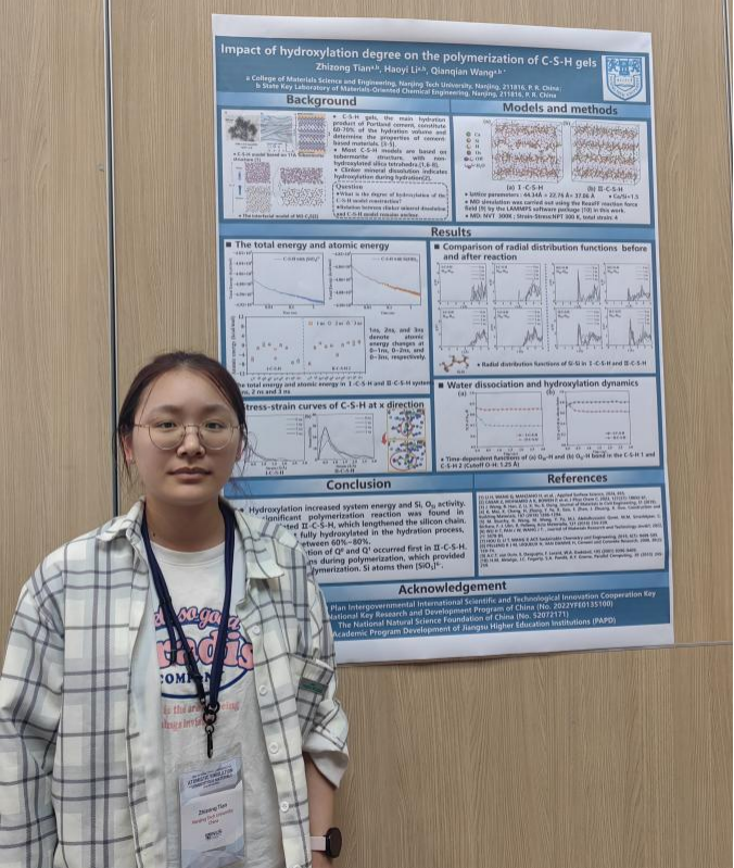 公司best365足球官网王倩倩副教授受邀作题为“The Influence of Changes in Silicon or Aluminium Bonding Numbers on C-(A)-S-H Gel Polymerization: Insights from Molecular Dynamics Simulation”口头报告,王倩倩副教授指导的材研2203班田志宗同学受邀进行海报展示。