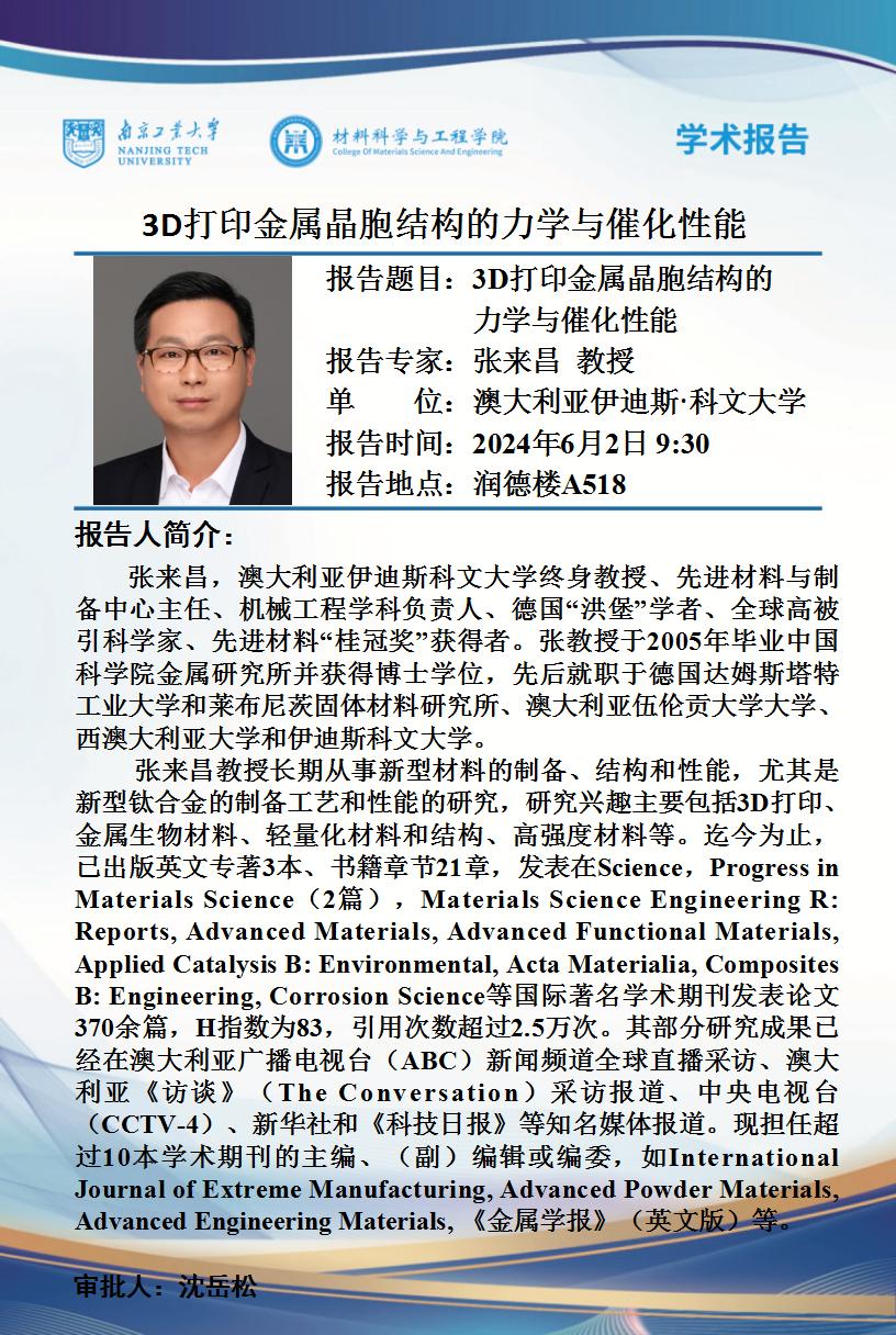 【学术报告】澳大利亚伊迪斯·科文大学张来昌教授学术报告-2024.6.2