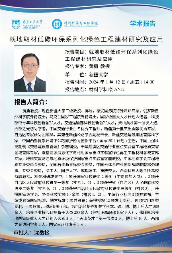 黄勇教授,现任新疆大学二级教授、博导,享受国务院特殊津贴专家,俄罗斯自然科公司外籍院士,乌克兰国家工程院外籍院士,国家级重大人才计划入选者,科技部中青年科技创新领军人才,交通运输部科技创新领军人才,天山英才第一层次人选,西部之光访问学者,中国交通行业百名优秀工程师,新疆第十批突出贡献优秀专家,自治区专家顾问团成员。