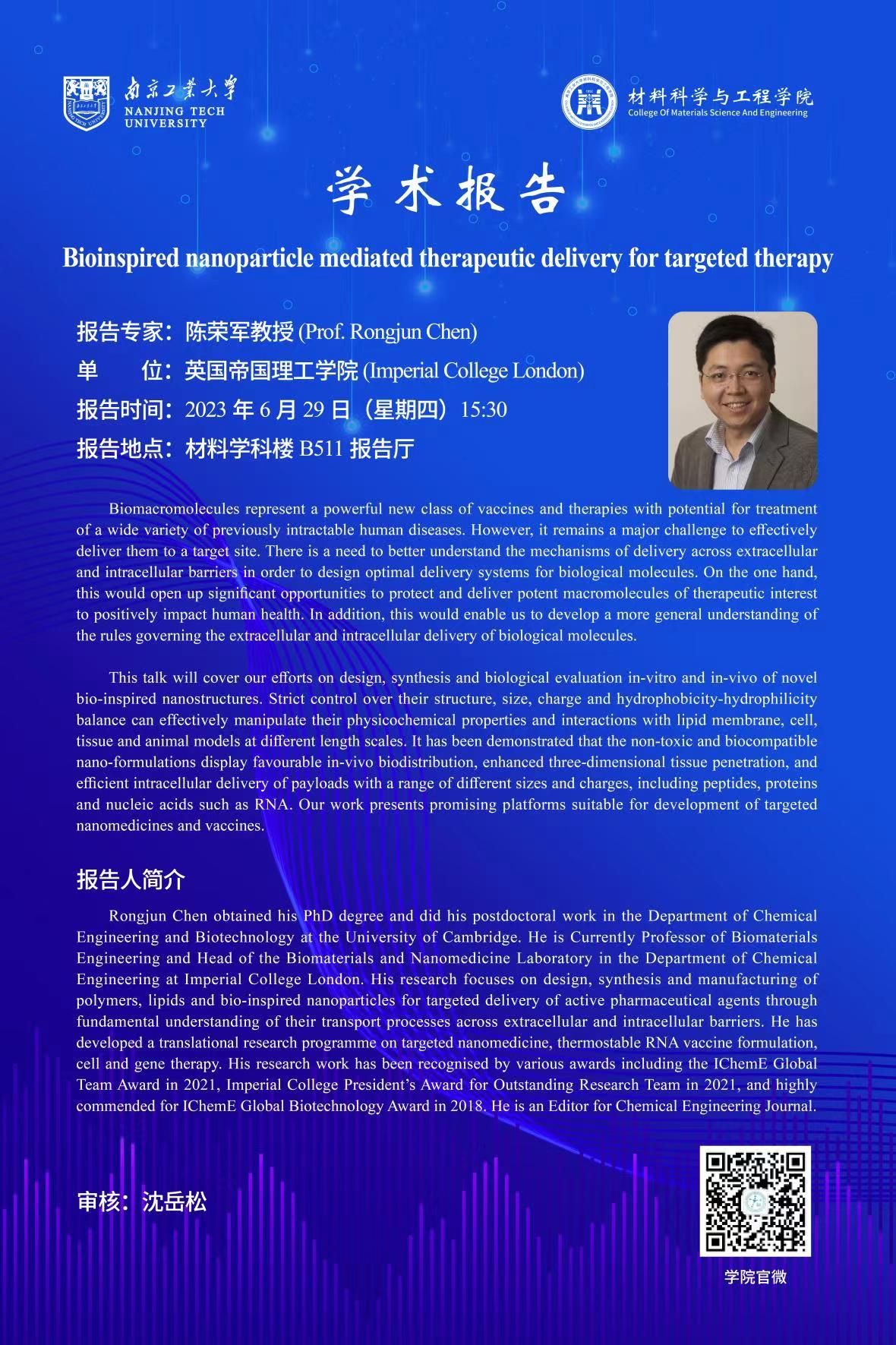 【学术报告】Bioinspired nanoparticle mediated therapeutic delivery for targeted therapy