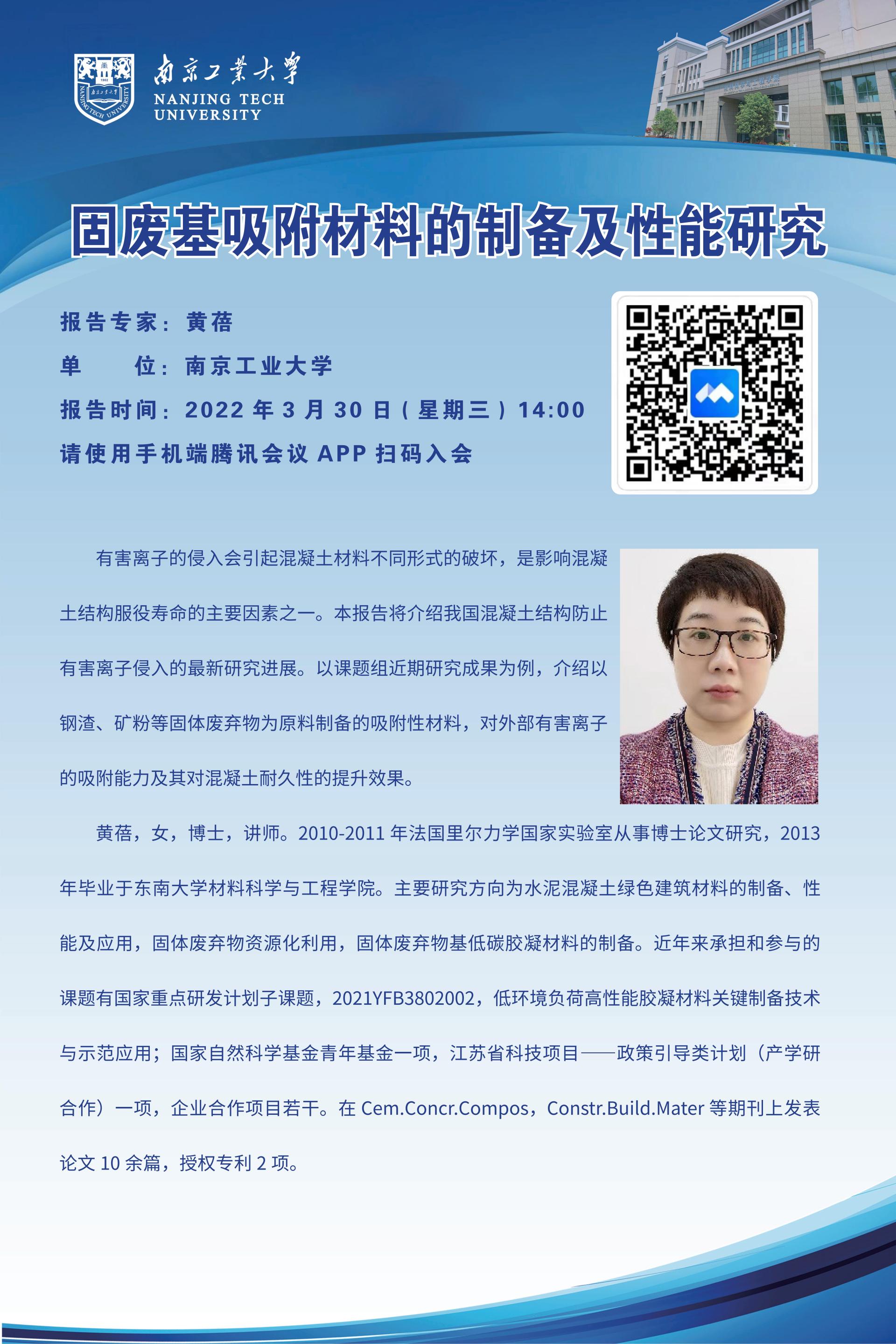 【润德集-导师学术报告会】固废基吸附材料的制备及性能研究